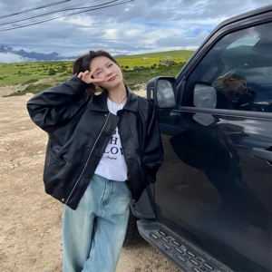 YJ2025新款法式复古皮衣外套女宽松显瘦百搭上衣