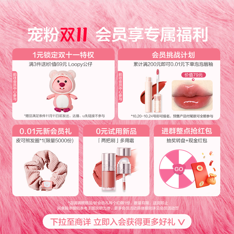 【淘金币抵扣1.6元,到手价27.4元】pinkbear皮可熊牛仔唇泥粉黑限定款唇釉哑光唇泥唇彩送女友,哑光质地不拔干,水润显色。