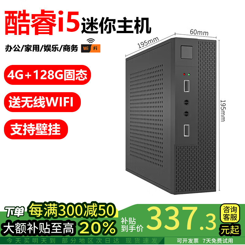 艾维娜【补贴至高20%】迷你主机家用游戏电竞办公家用游戏客厅Mini台式机ITX电脑 一:酷睿i5/4G内存/128G固态硬盘