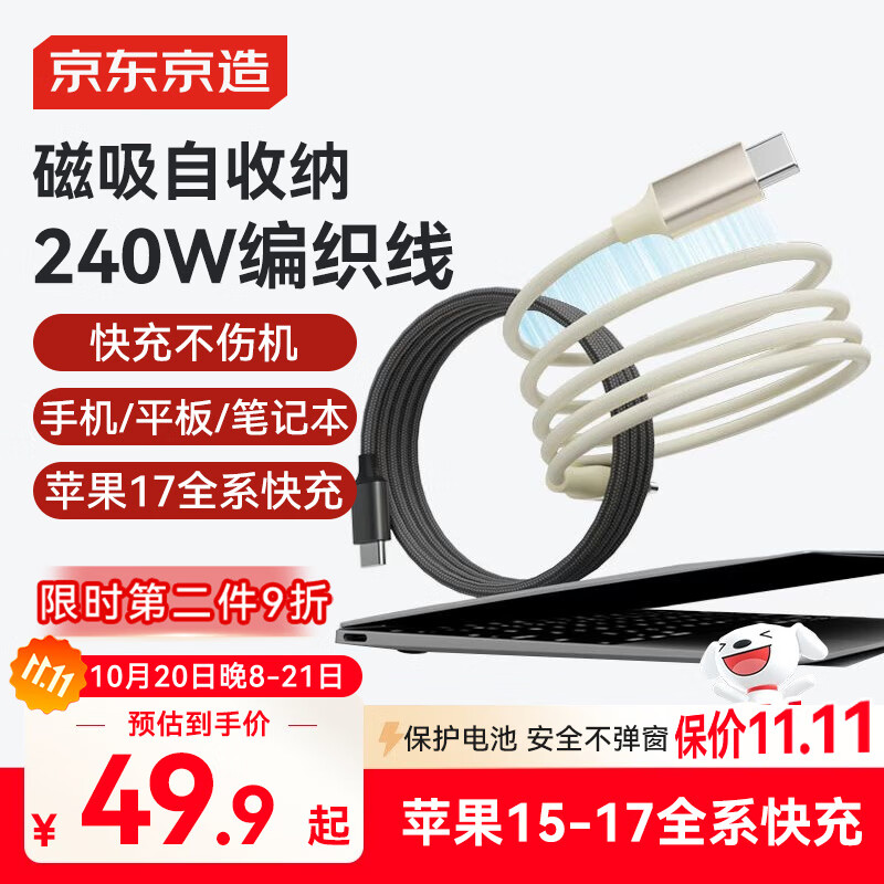 京东京造PD240W磁吸数据线Type-C苹果16/17充电线编织线快充车载1米适用苹果平板笔记本电脑华为 星空黑