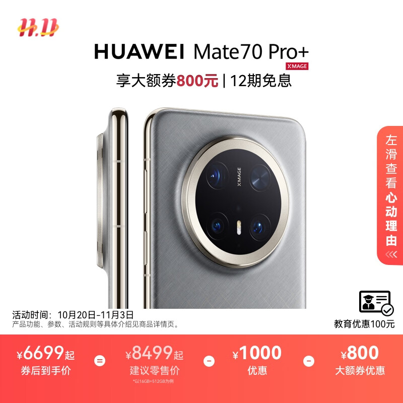 HUAWEI Mate 70 Pro+ 鸿蒙AI 高亮钛玄武架构 红枫原色影像 华为鸿蒙智能手机 金丝银锦 16GB+512GB
