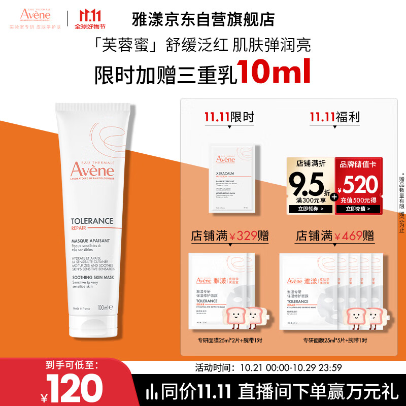 雅漾(Avene)【樊振东同款】专研舒缓修护面膜100ml芙蓉蜜免洗涂抹11.11抢先购
