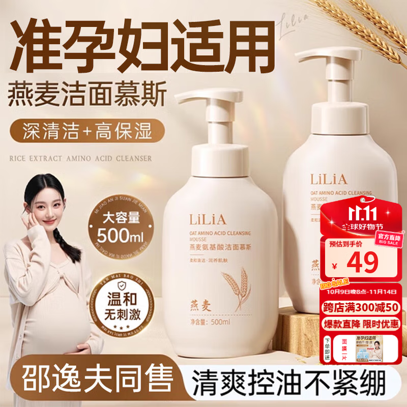 LILIA准孕妇洗面奶控油水润保湿小麦氨基酸洁面乳油皮干皮用护肤品500g