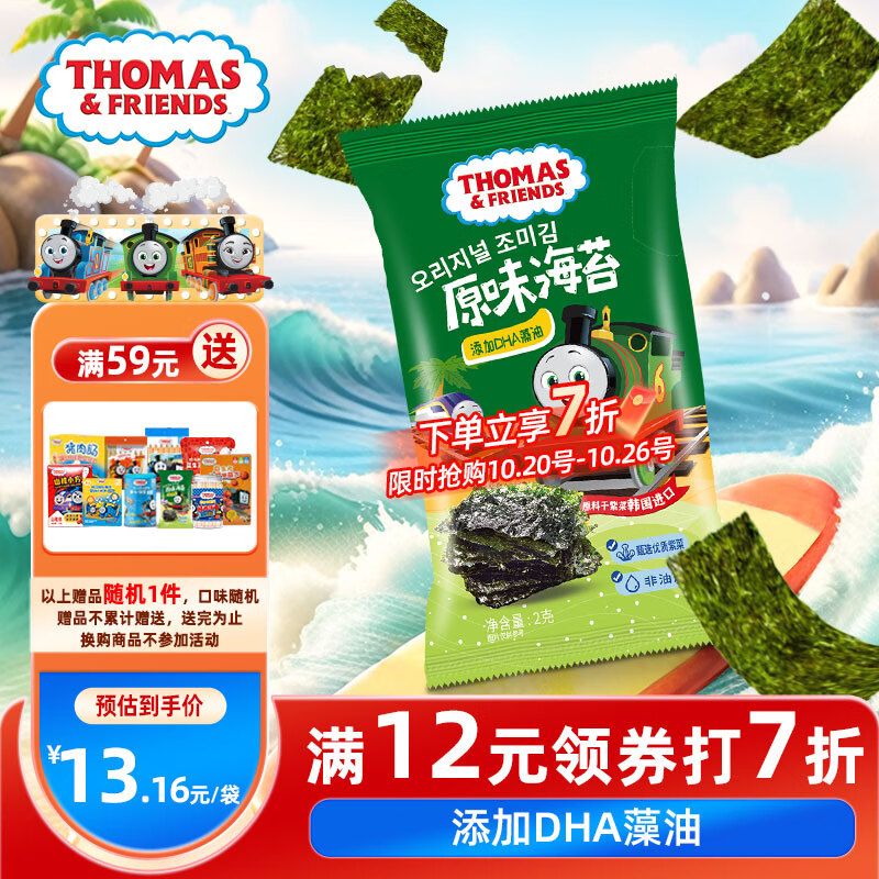 小火车(THOMAS & FRIENDS)即食紫菜托马斯海苔片休闲宝宝零食晾晒烤制DHA藻油 原味海苔16g