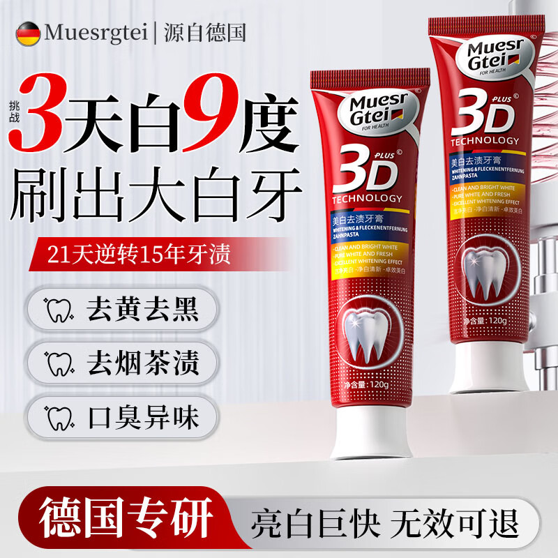 MUESRGTEI德国进口美白牙膏去口臭去黄去牙渍去烟渍牙垢护龈十大知名品牌