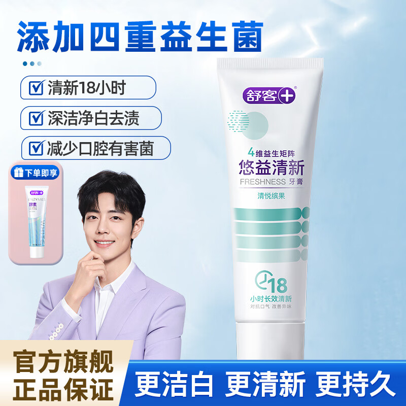 舒客益生菌牙膏抑菌清新口气洁白去渍家用家庭装实惠 清悦鲜果120g