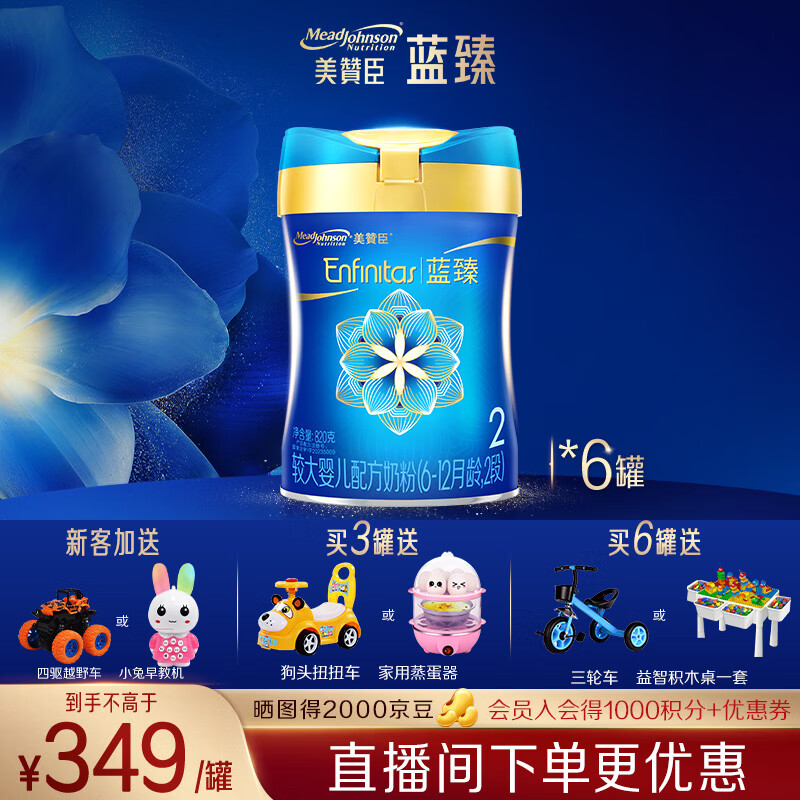 美赞臣【新国标】蓝臻2段婴儿奶粉820g(6-12月龄) 荷兰原装进口 2段 蓝臻 820g 6罐 【整箱更划算】