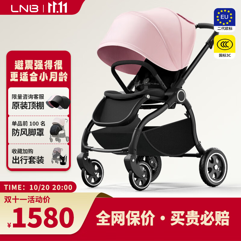 朗纳铂(land leopard)老虎Pro婴儿推车婴儿车轻便折叠双向超大轮避震儿童BB伞车 小猪粉【黑】