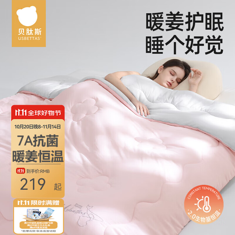 贝肽斯婴儿被子秋冬季暖姜恒温儿童被子加厚保暖纯棉宝宝盖被四季通用 粉灰【中厚夹棉-推荐15-23℃】 150x200cm