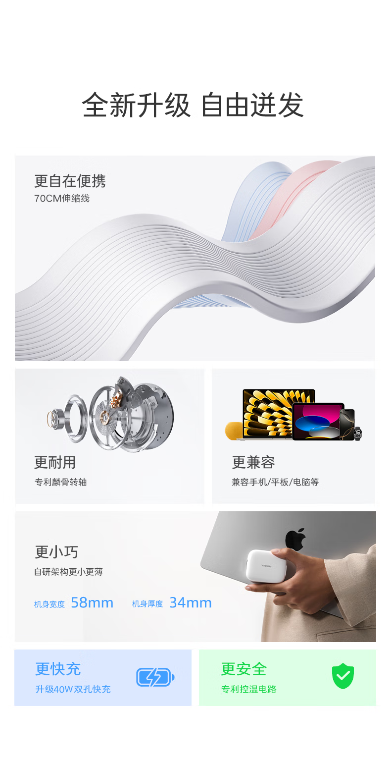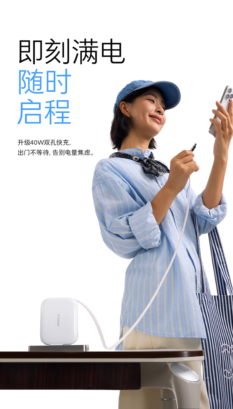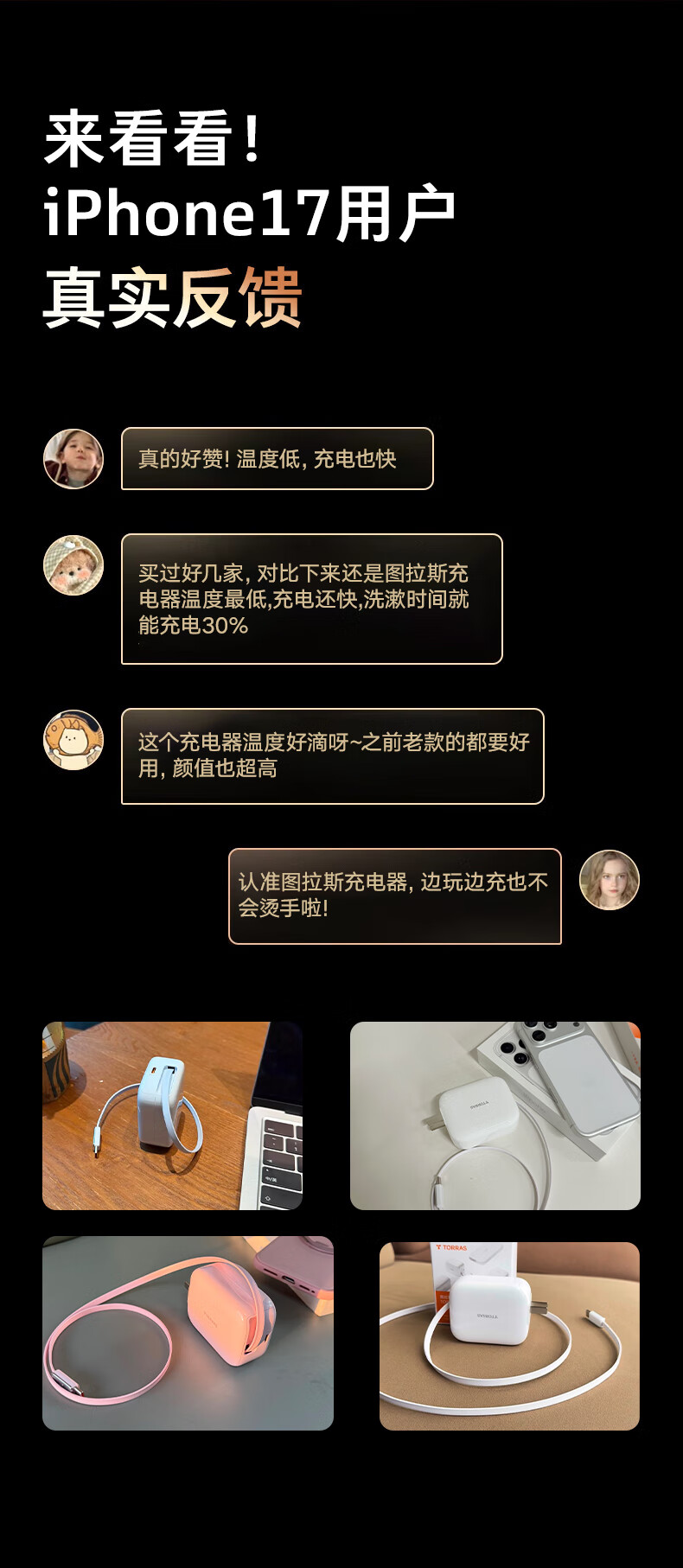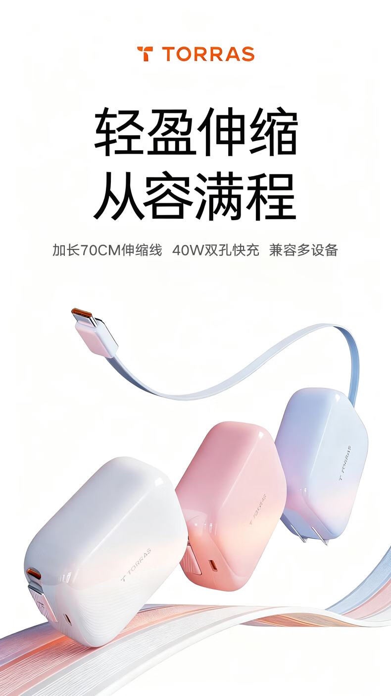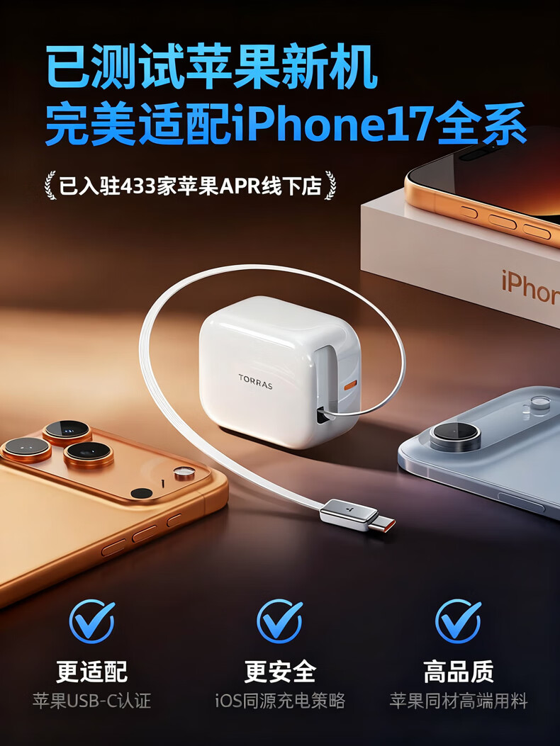 图拉斯Yoga【官 方 正 品】40W苹果17充电器iPhone17promax自带伸缩线快充头适配16/15Pro原装功率小冰块