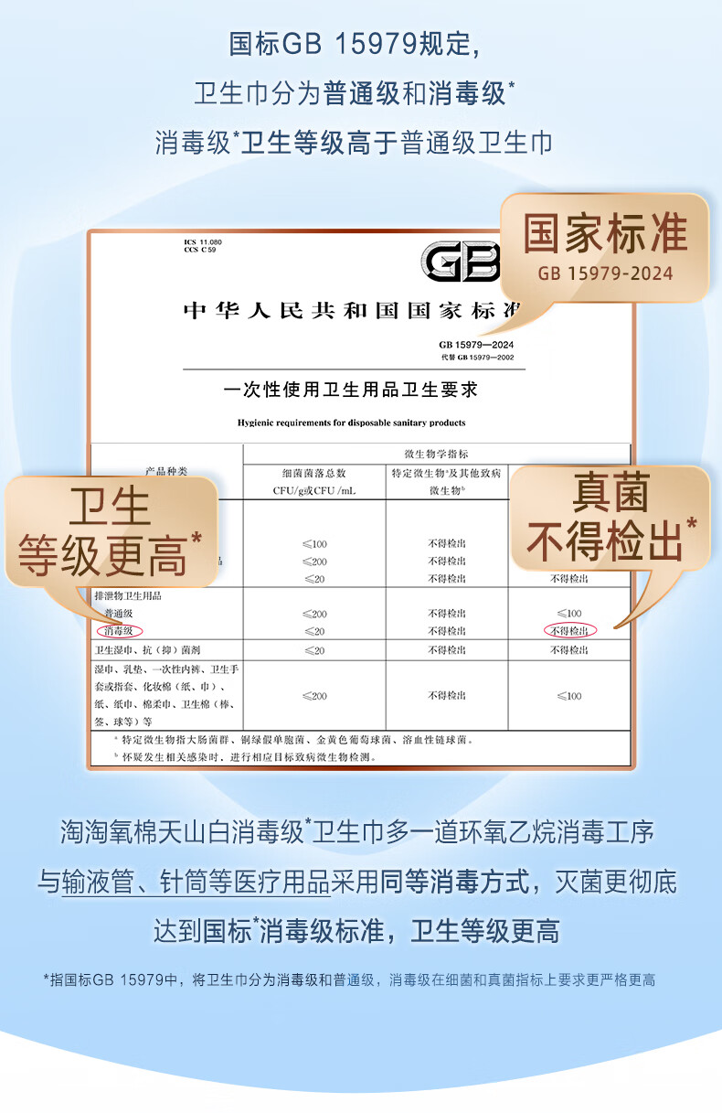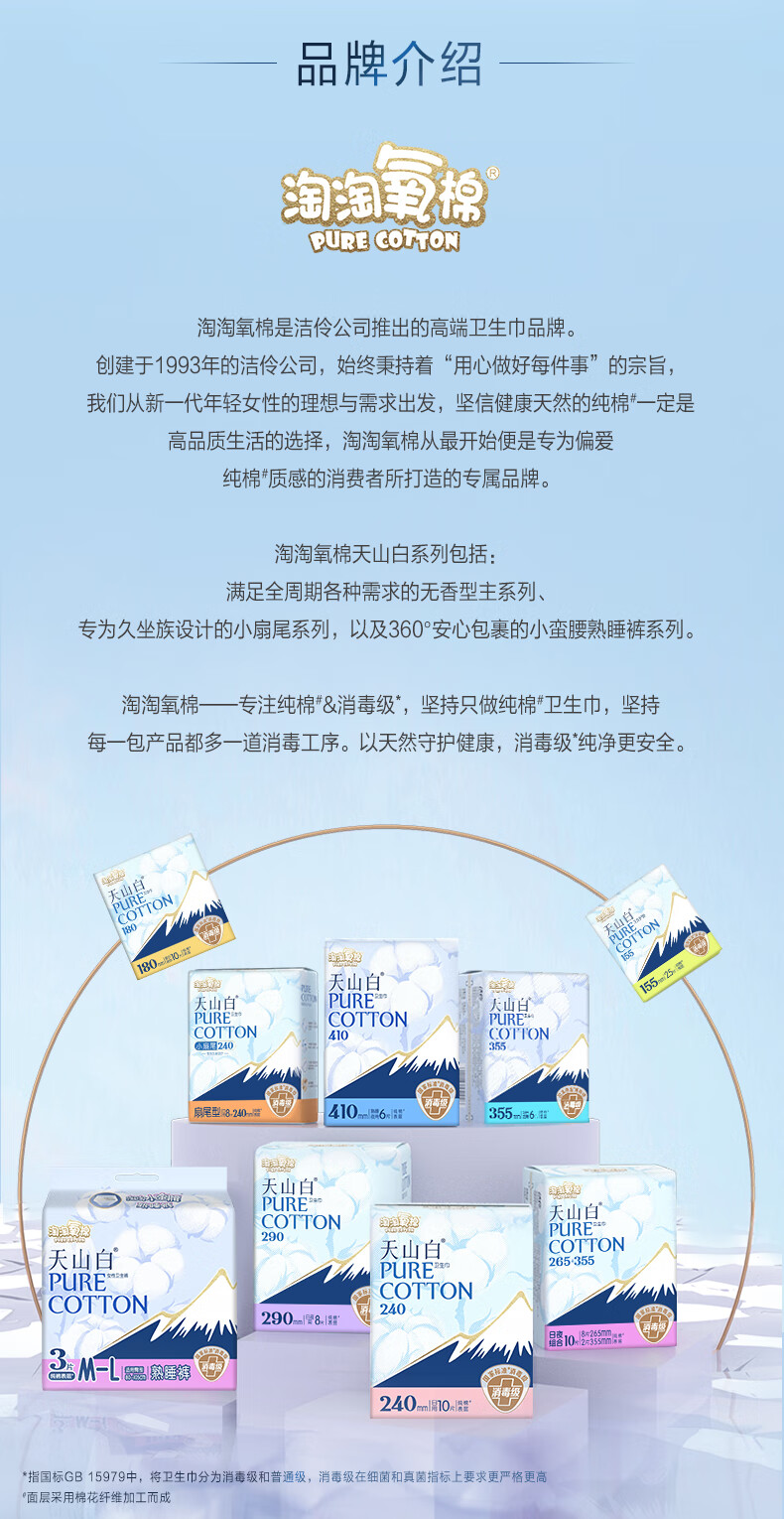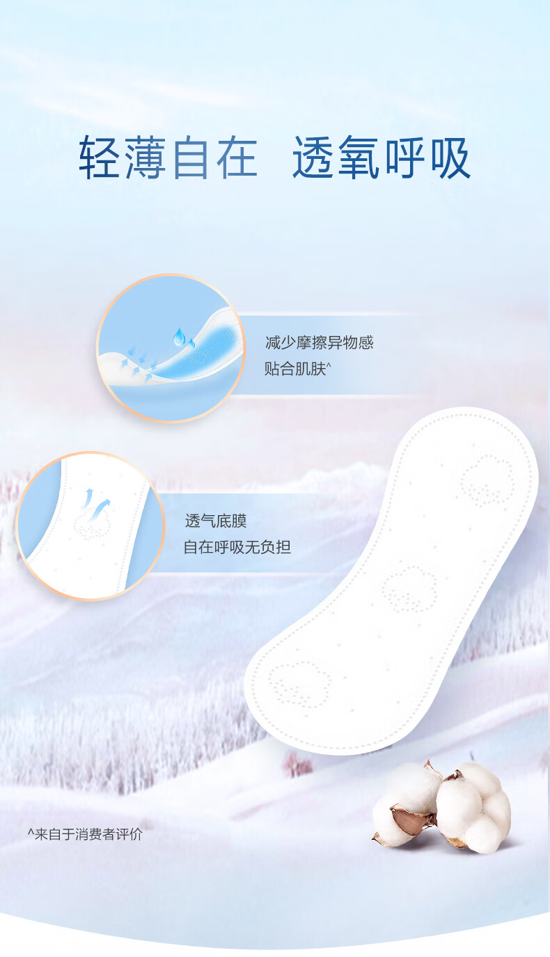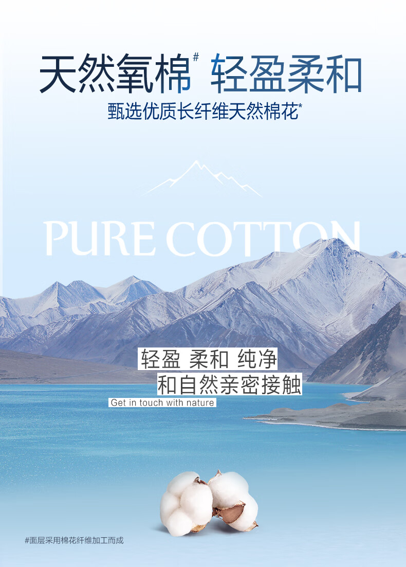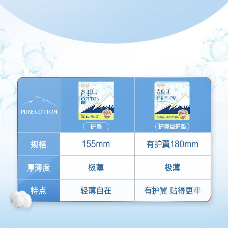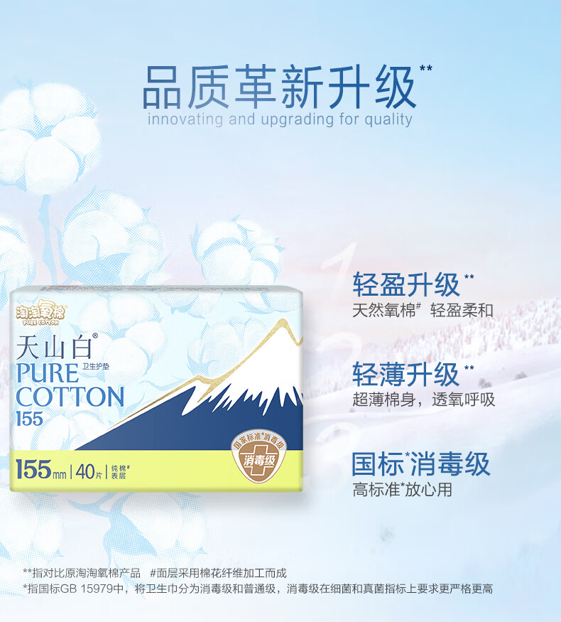淘淘氧棉天山白纯棉消毒级卫生巾护垫155mm40片京东自营