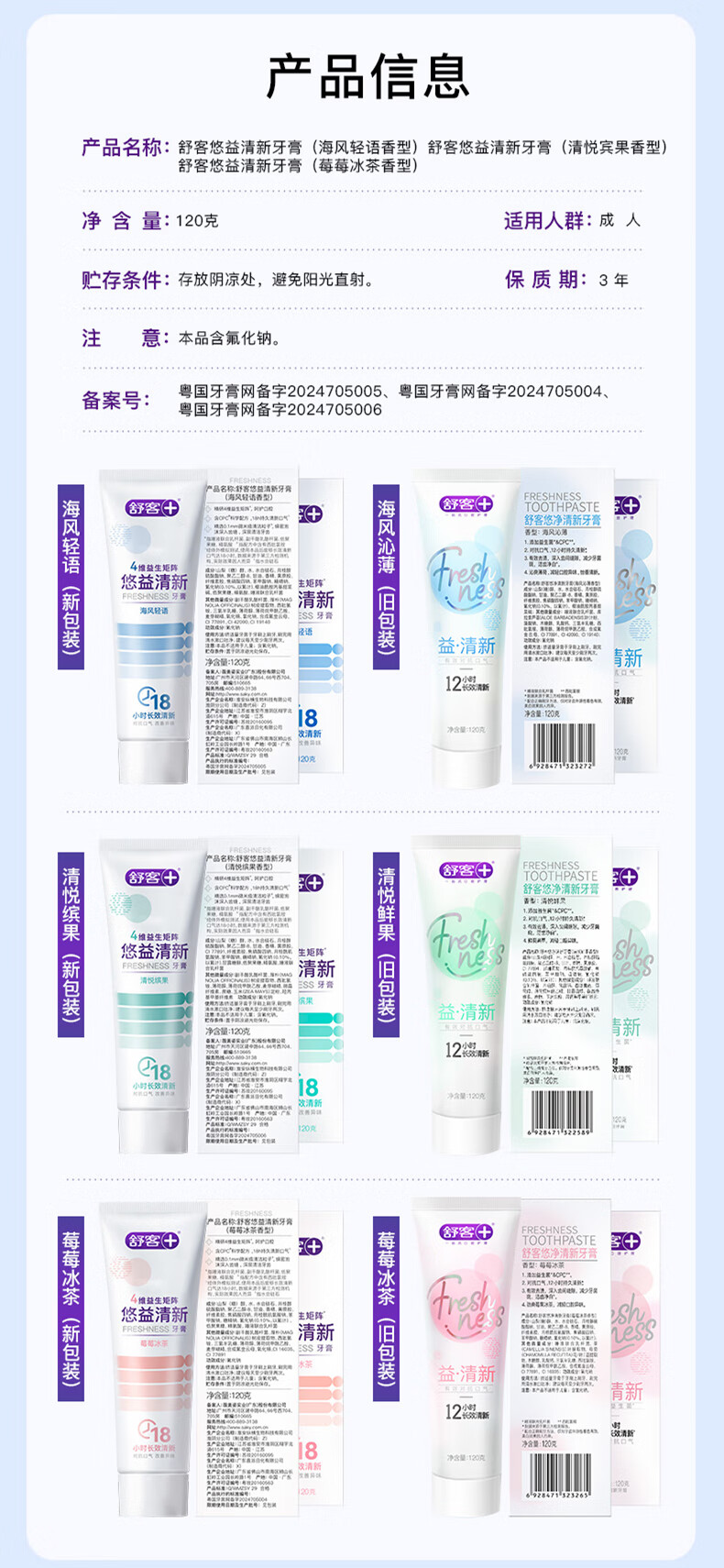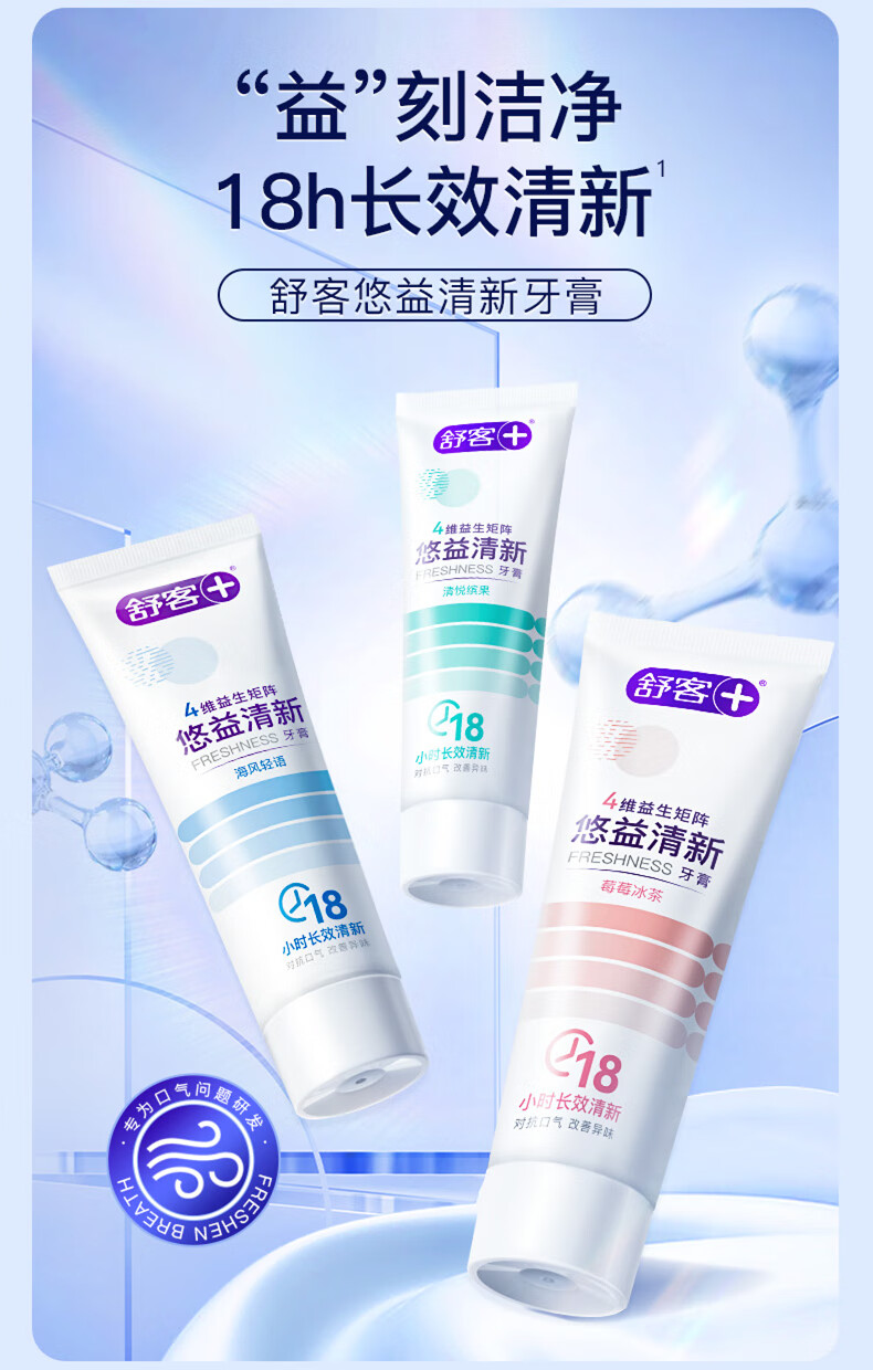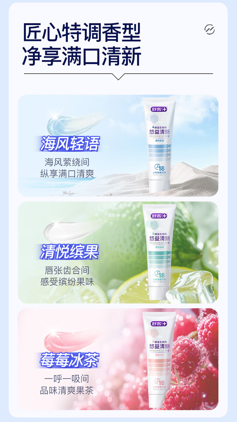 舒客益生菌牙膏抑菌清新口气洁白去渍家用家庭装实惠 清悦鲜果120g