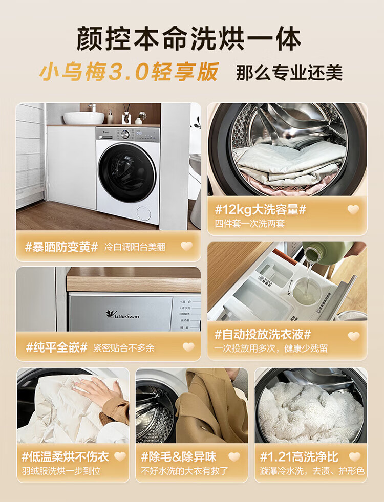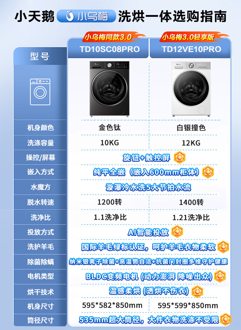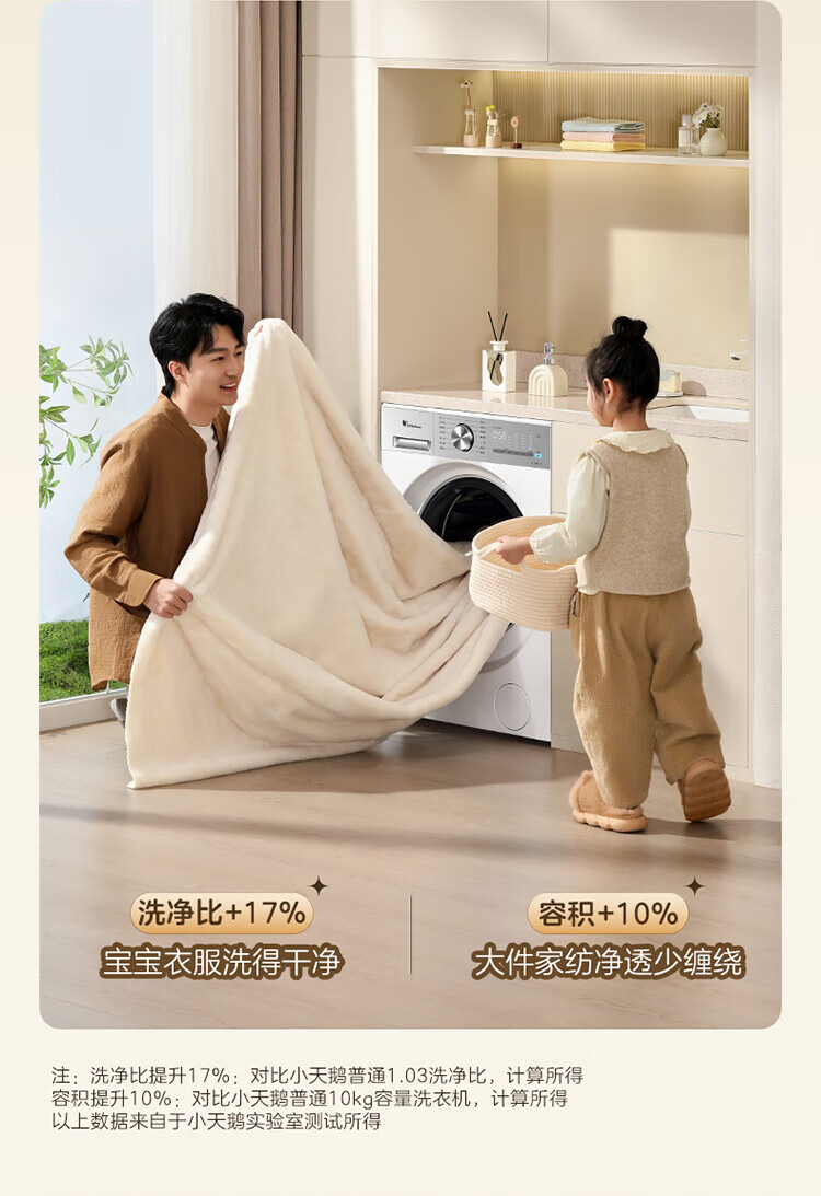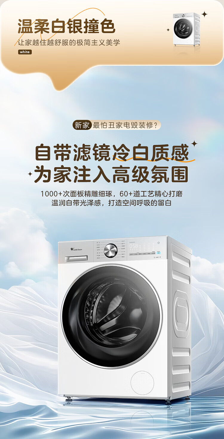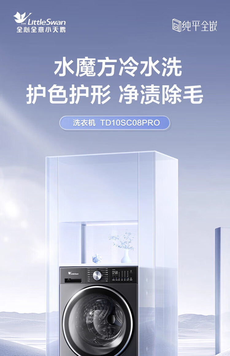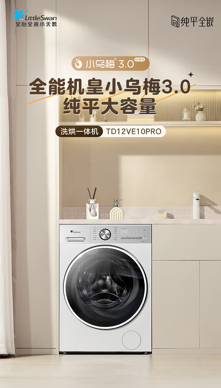 小天鹅(LittleSwan)滚筒洗衣机全自动家用小乌梅/小钢炮3.0水魔方漩瀑冷水洗超薄纯平全嵌净屑除毛12/10KG可选大容量 小乌梅3.0轻享版【VE10PRO】白色滚筒洗烘