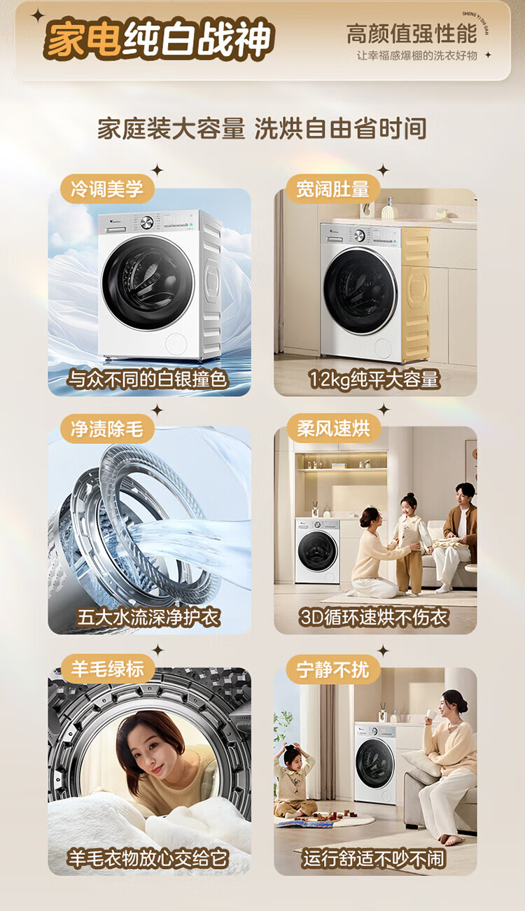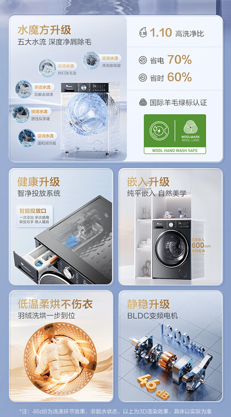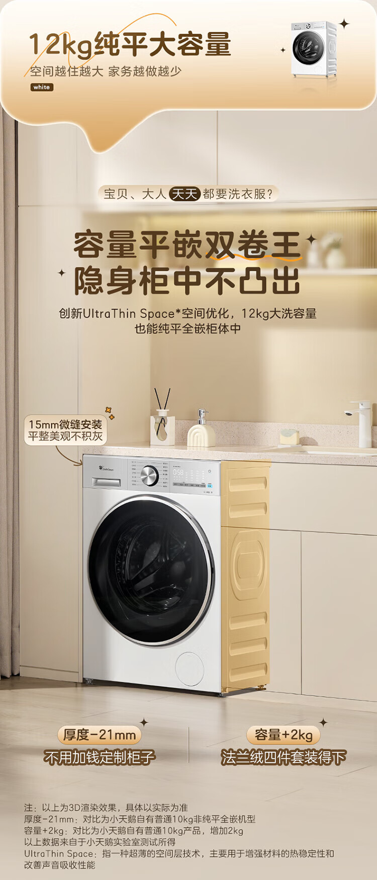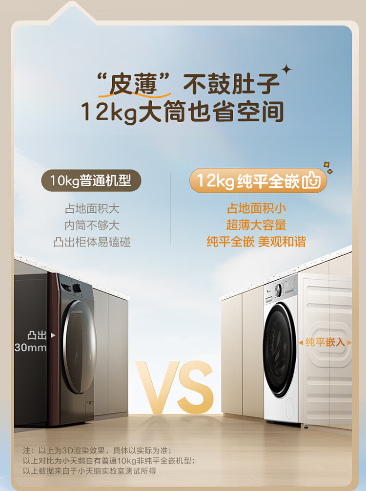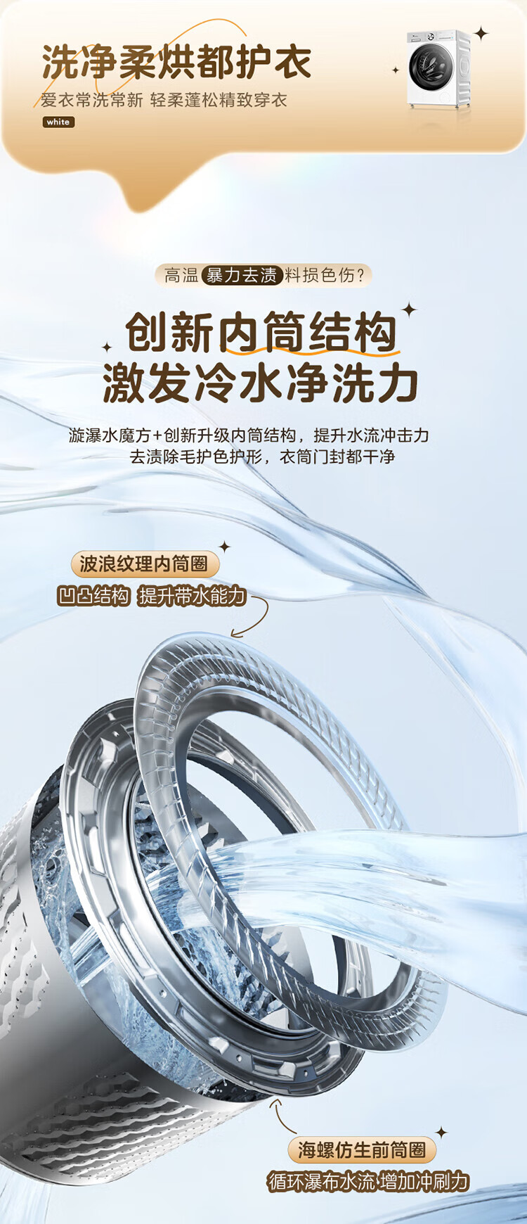 小天鹅(LittleSwan)滚筒洗衣机全自动家用小乌梅/小钢炮3.0水魔方漩瀑冷水洗超薄纯平全嵌净屑除毛12/10KG可选大容量 小乌梅3.0轻享版【VE10PRO】白色滚筒洗烘