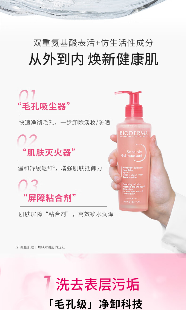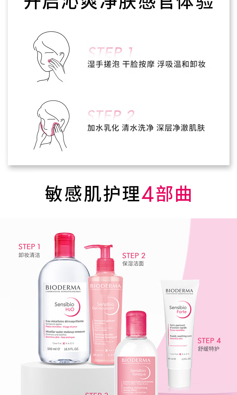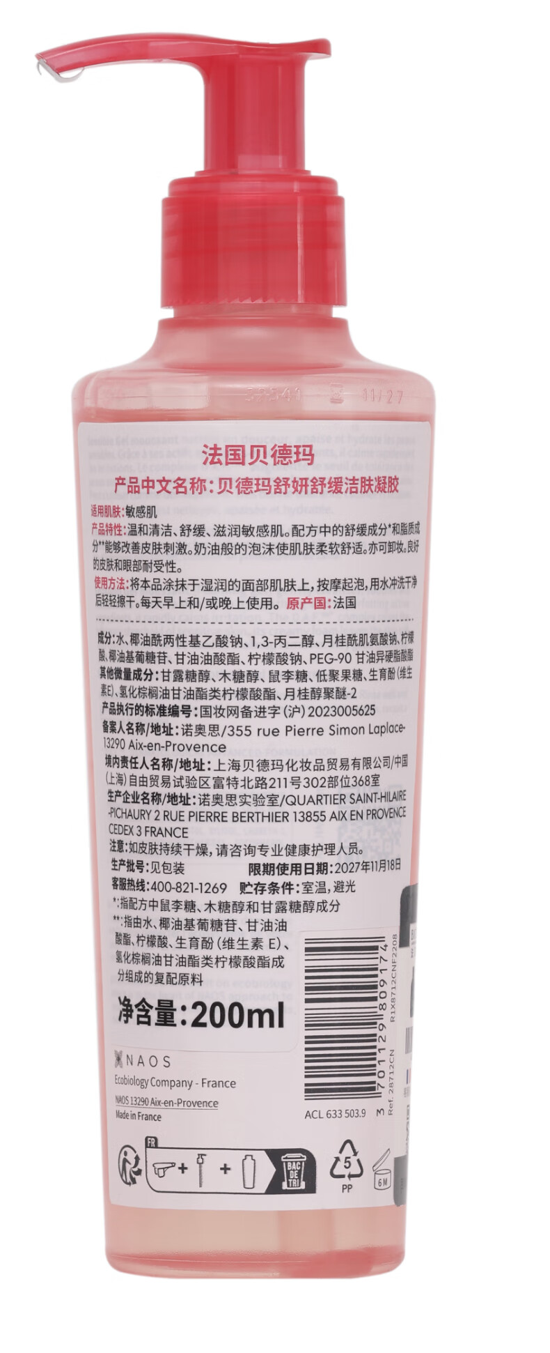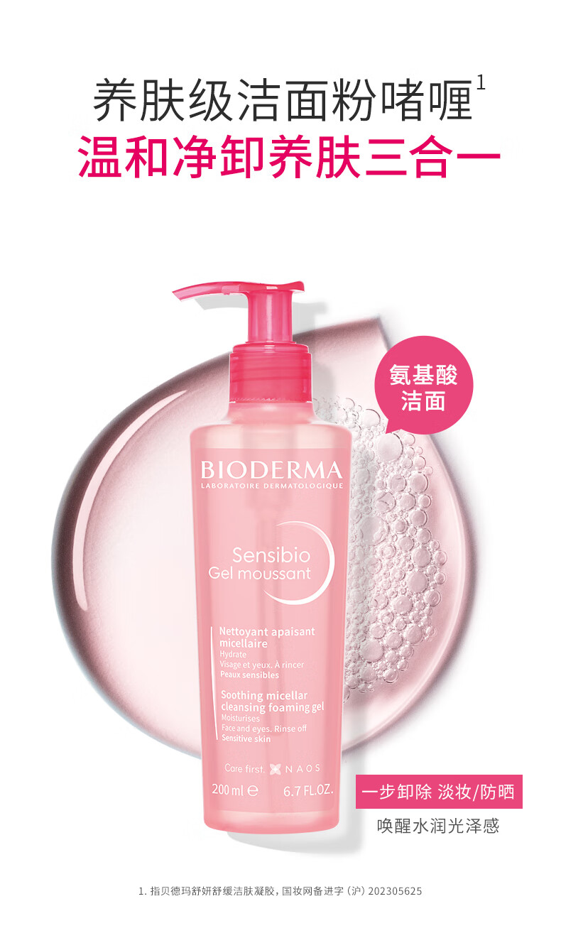 BIODERMA 【11.11】贝德玛舒妍粉啫喱洁面卸妆凝胶氨基酸温和洗面奶敏感肌 400ml
