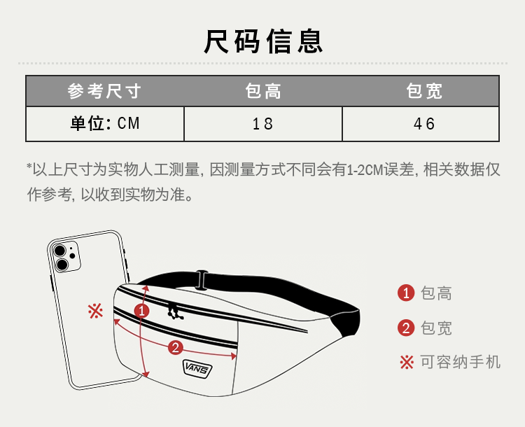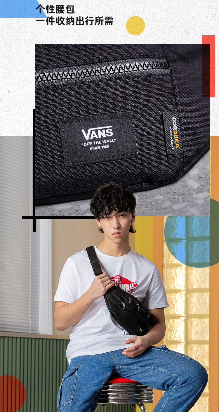 VANS范斯官方 男女情侣腰包纯黑个性高街 黑色 均码