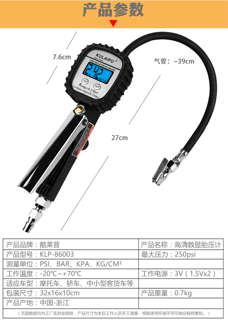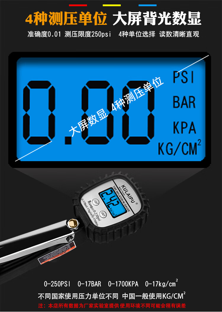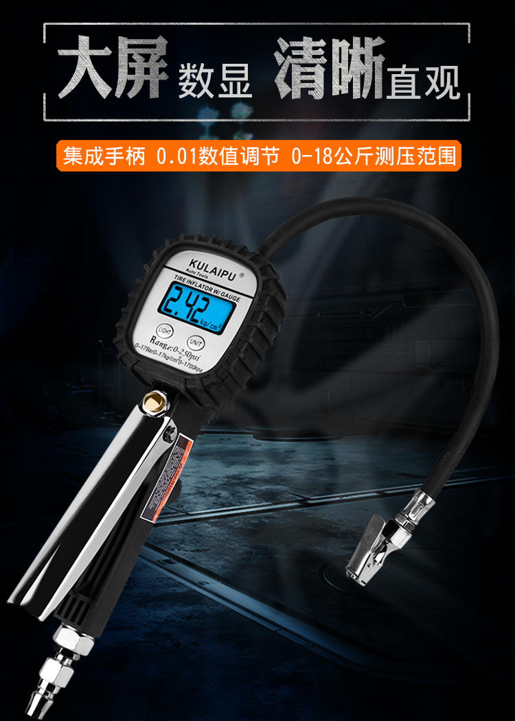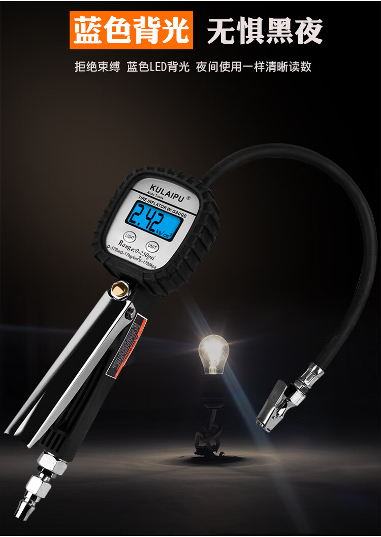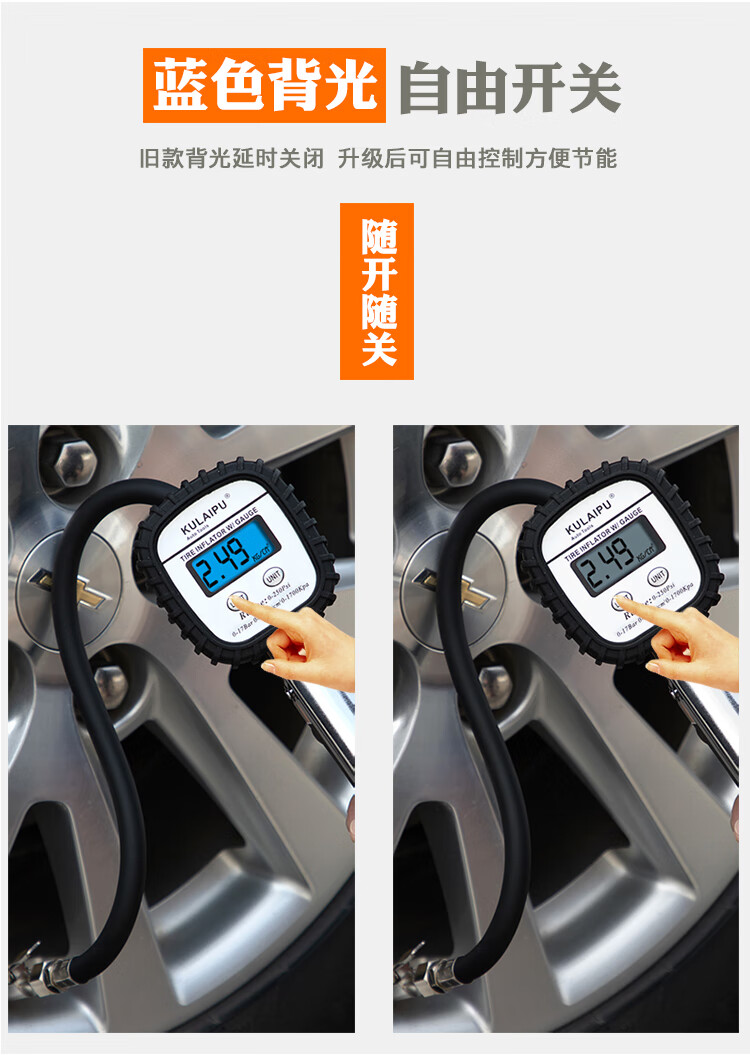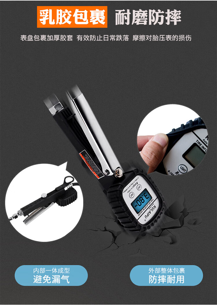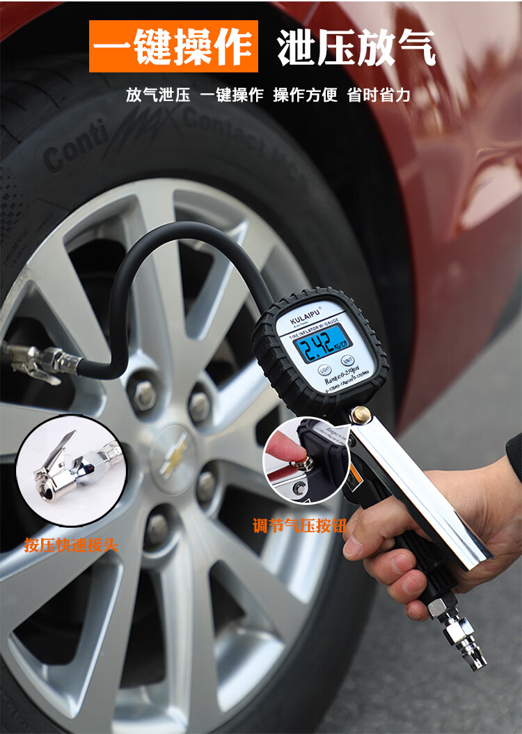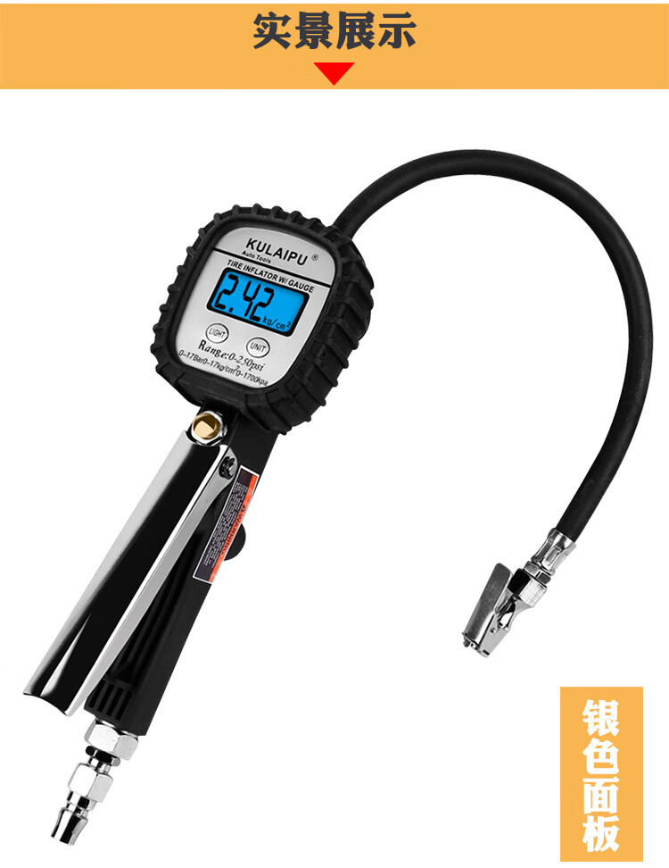 酷莱普高精度轮胎气压表 车用充气表胎压计胎压表 KLP-86003 黑银色