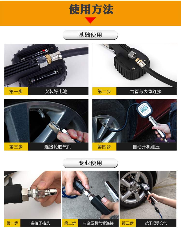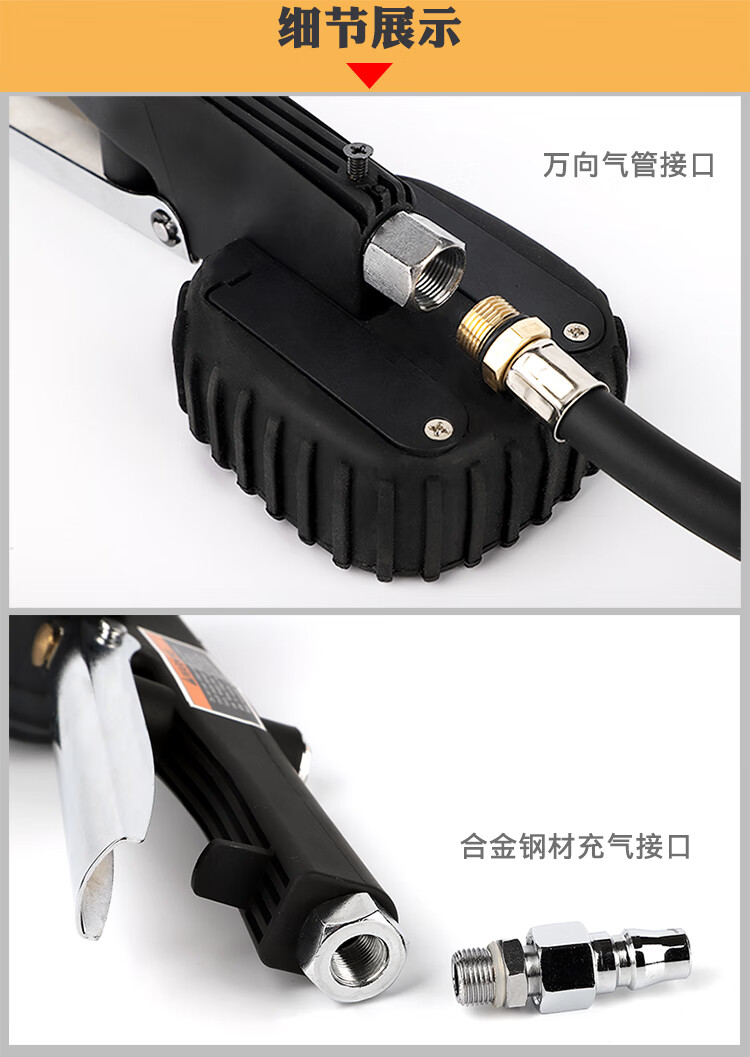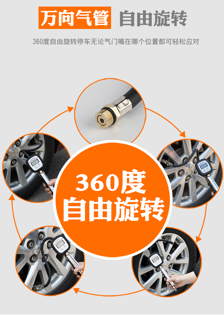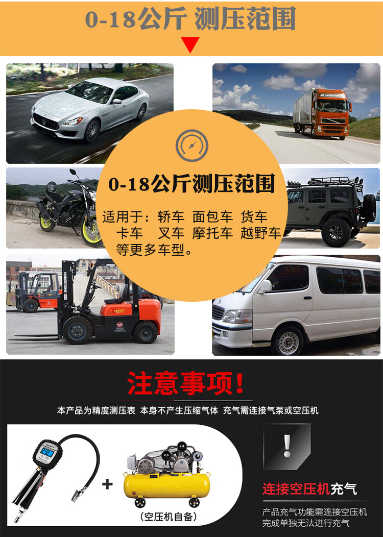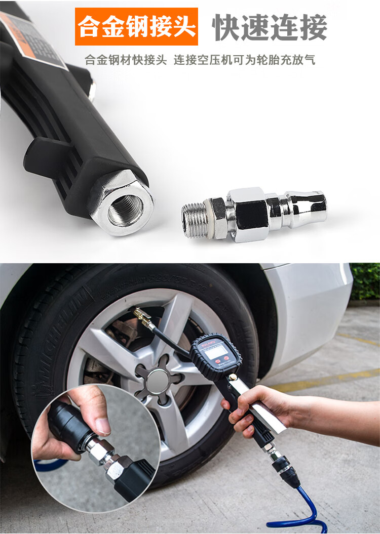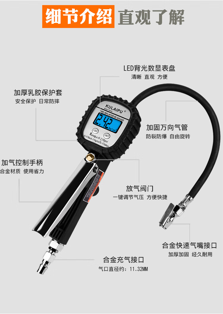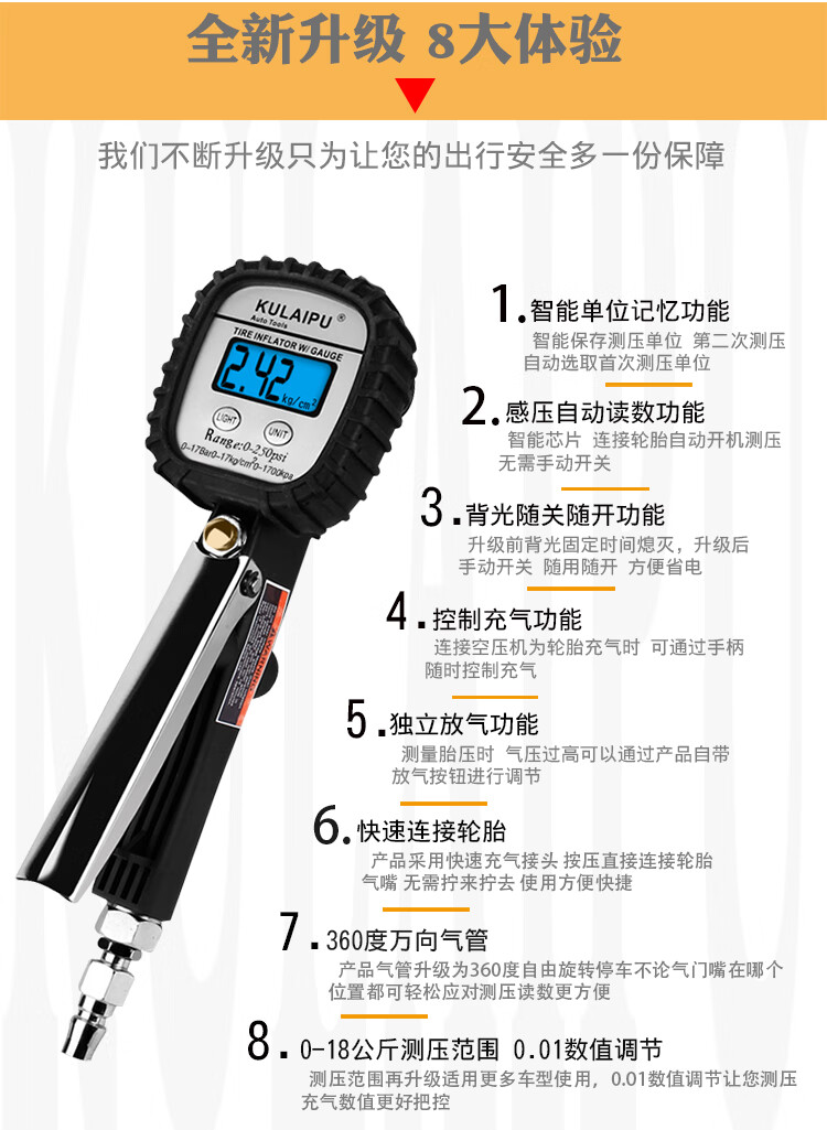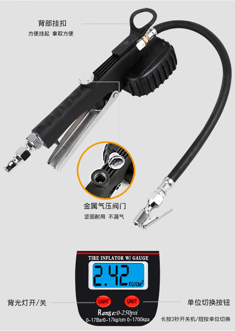 酷莱普高精度轮胎气压表 车用充气表胎压计胎压表 KLP-86003 黑银色
