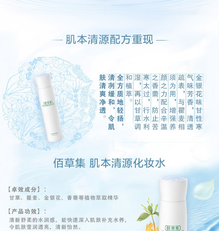 佰草集爽肤水 肌本清源化妆水 补水保湿滋润柔肤水护肤品礼物送女友 肌本清源化妆水150ml