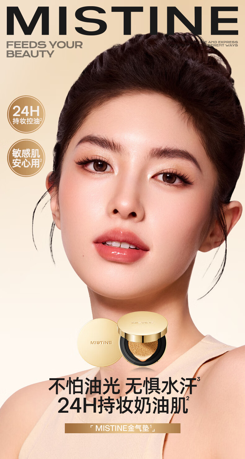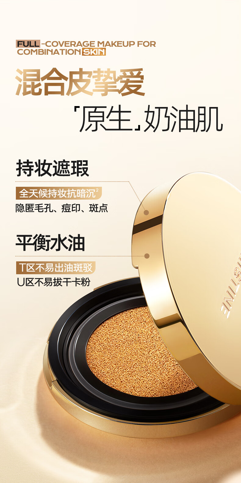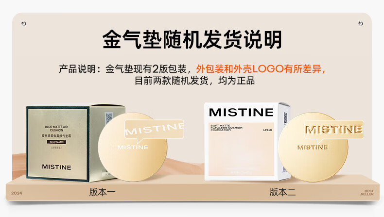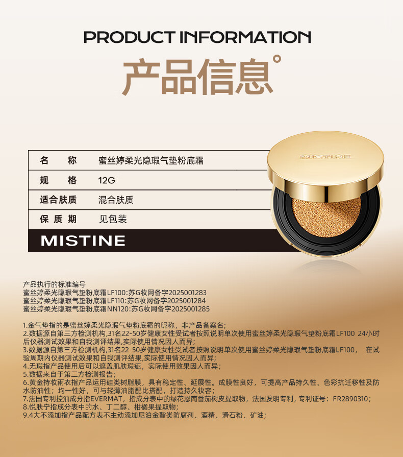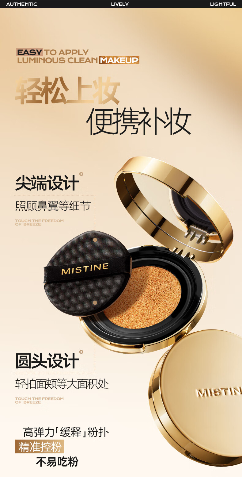 蜜丝婷(Mistine)海绵金气垫bb霜高遮瑕保湿持久底妆 主推高遮瑕版-金气垫12g 【一壳两芯】LF110-自然色