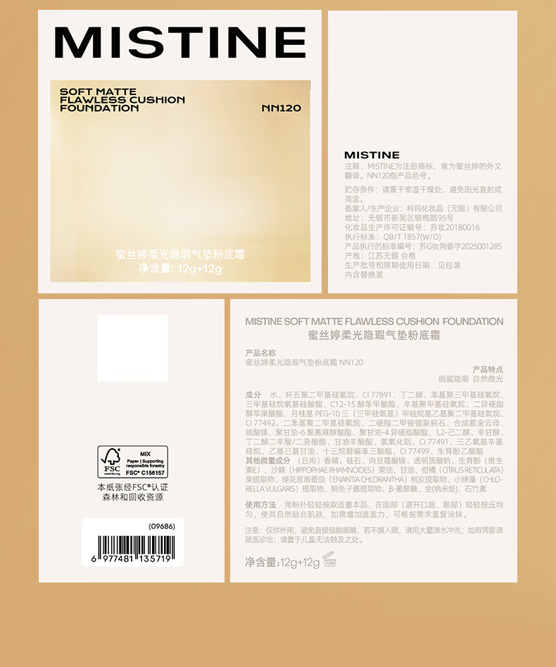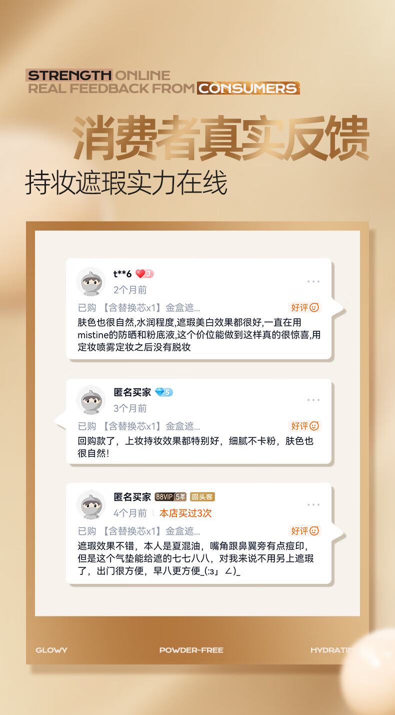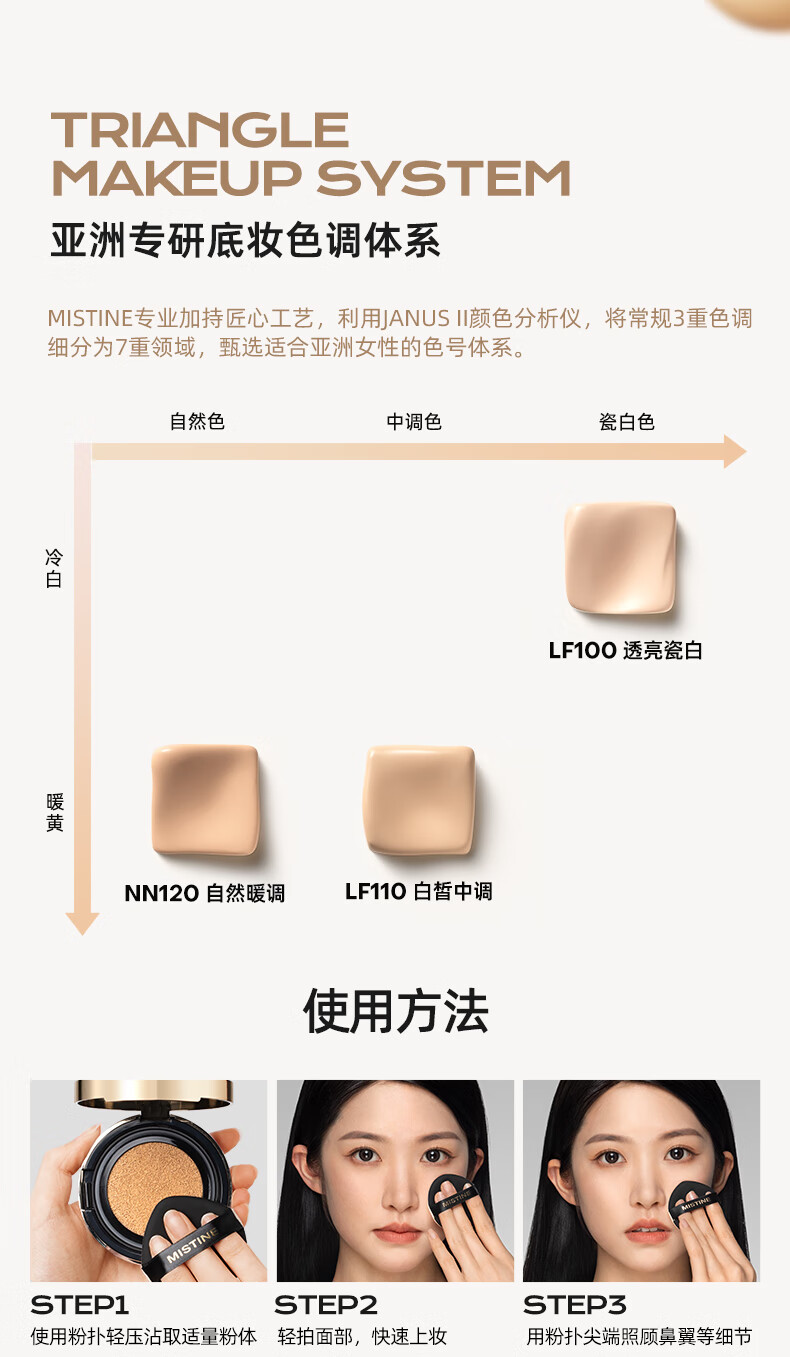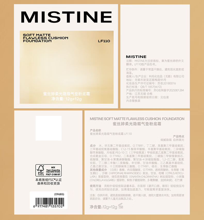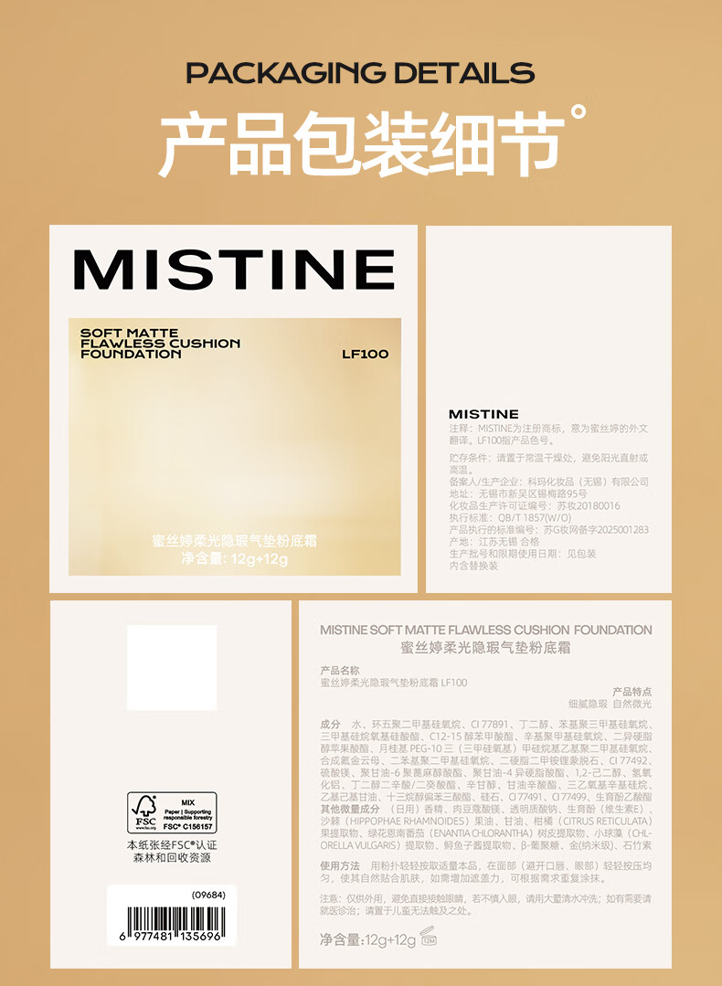 蜜丝婷(Mistine)海绵金气垫bb霜高遮瑕保湿持久底妆 主推高遮瑕版-金气垫12g 【一壳两芯】LF110-自然色