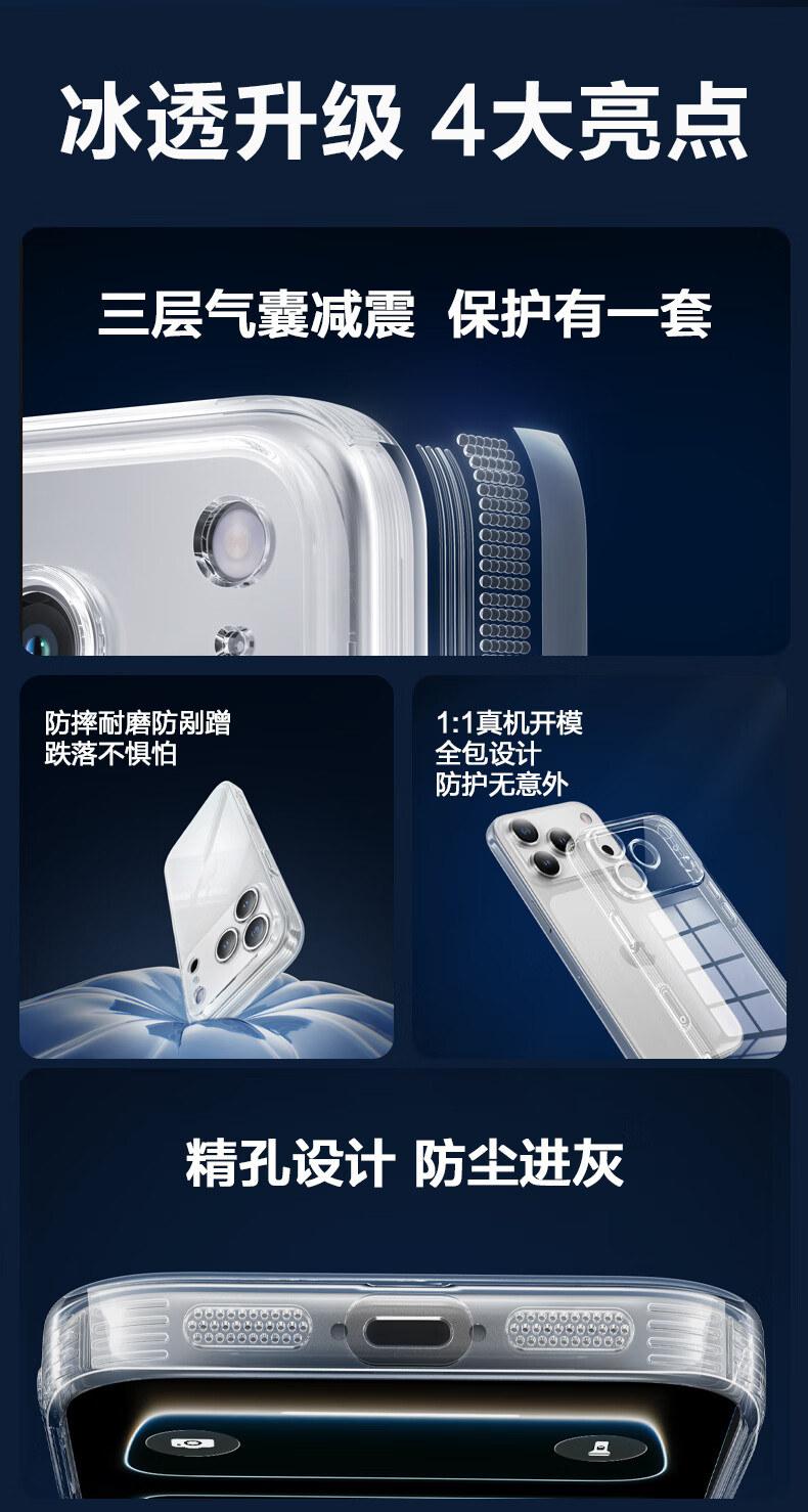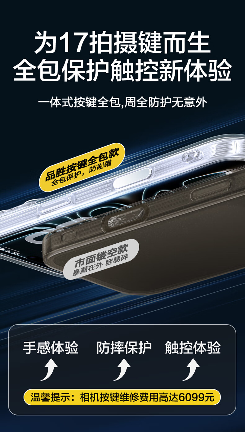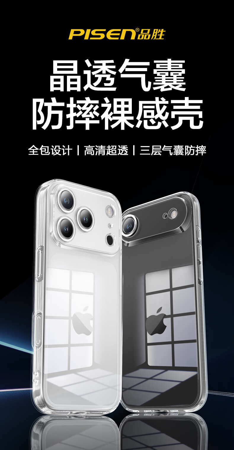 品胜【相机键全包|气囊升级】适用iPhone17ProMax手机壳苹果17ProMax保护套晶透耐磨简约气囊防摔壳