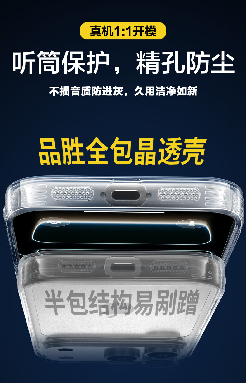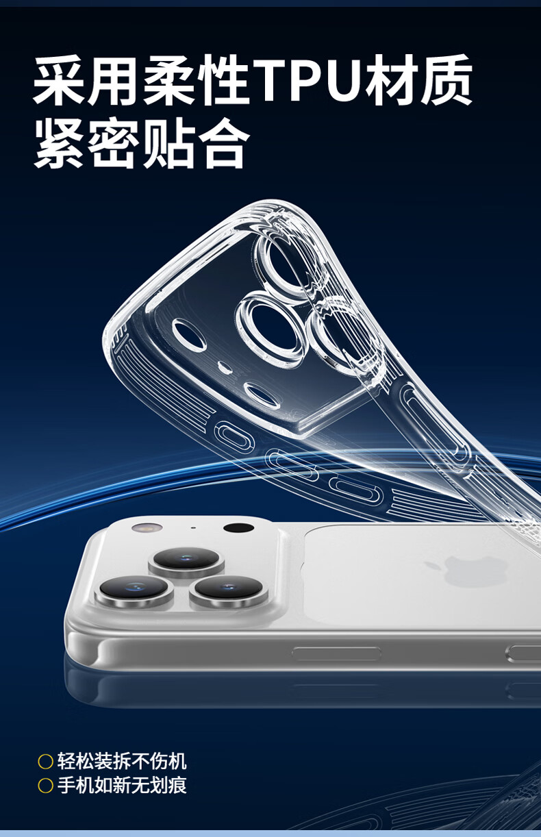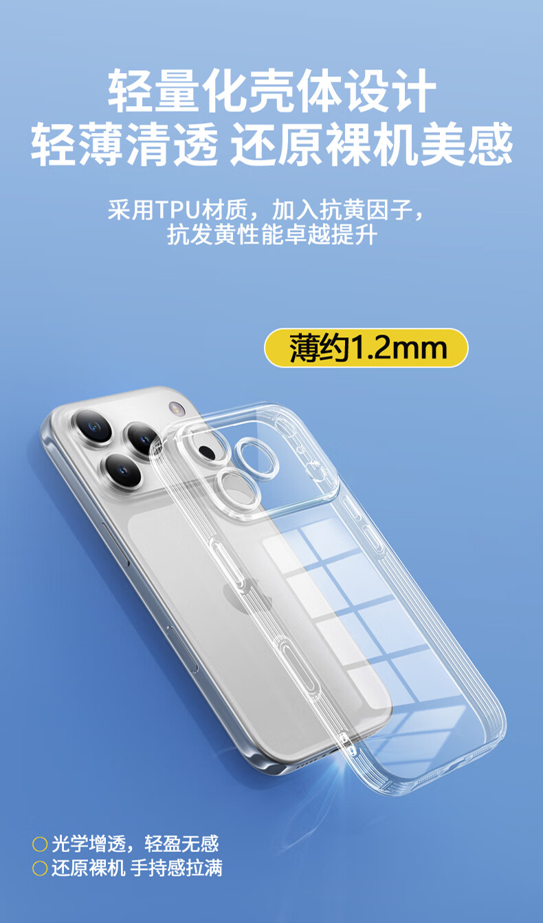 品胜【相机键全包|气囊升级】适用iPhone17ProMax手机壳苹果17ProMax保护套晶透耐磨简约气囊防摔壳