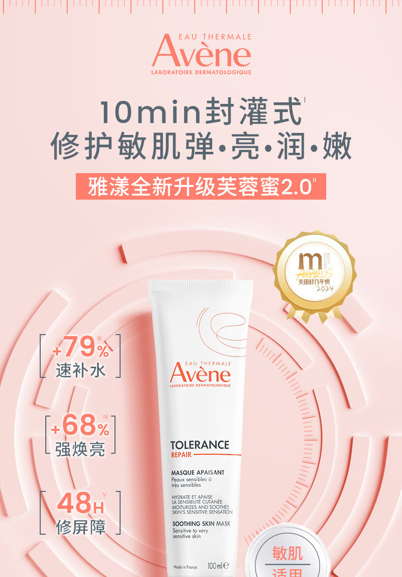 雅漾(Avene)【樊振东同款】专研舒缓修护面膜100ml芙蓉蜜免洗涂抹11.11抢先购