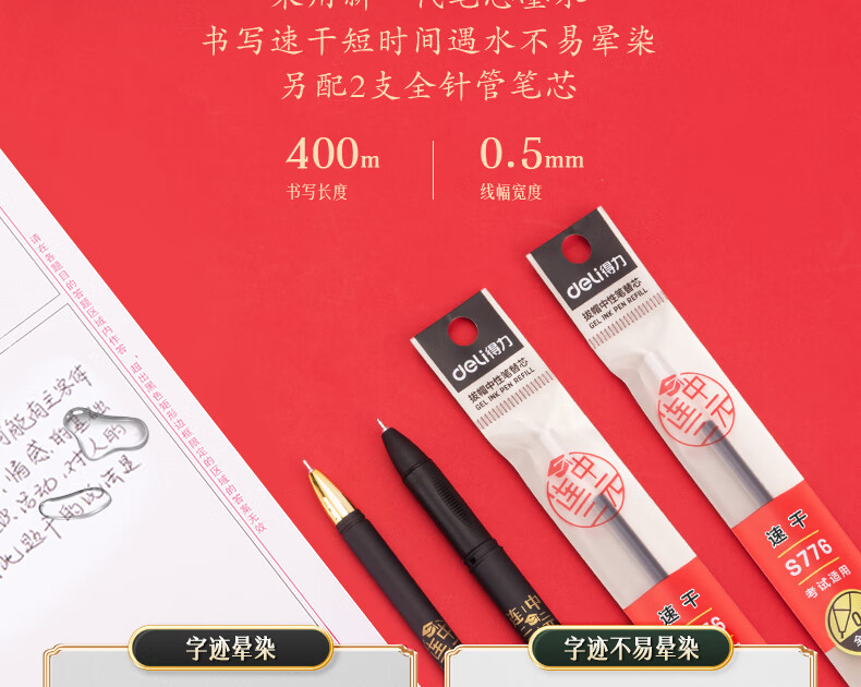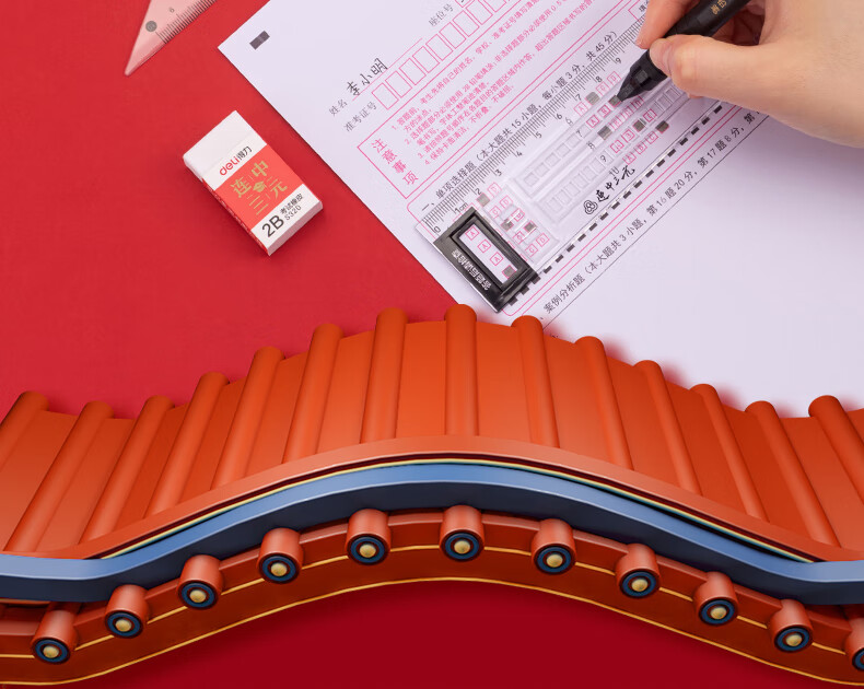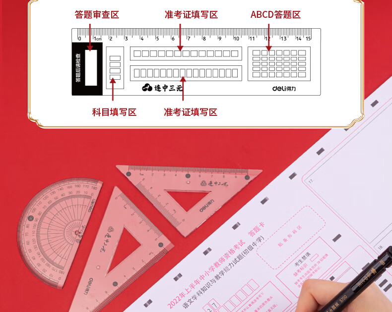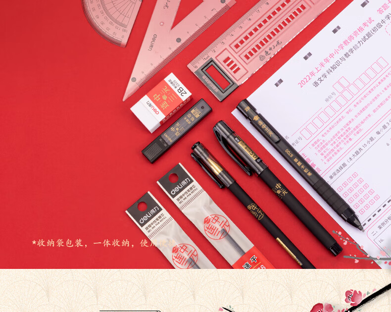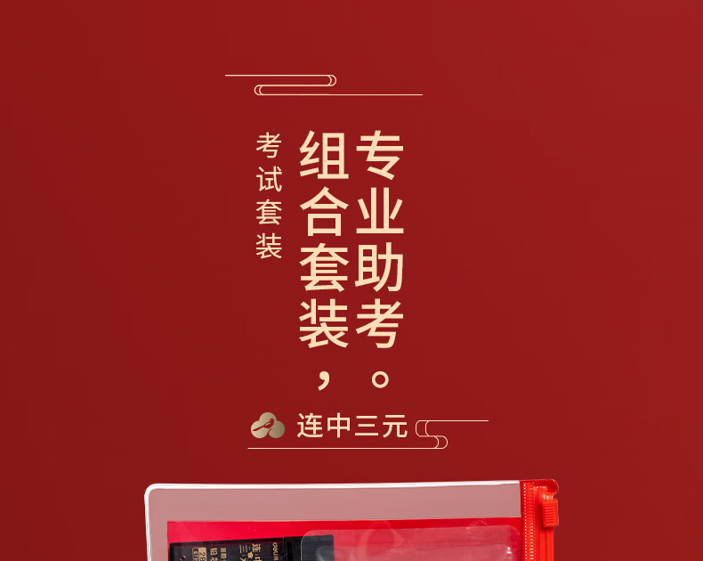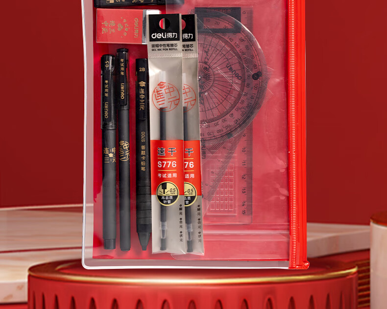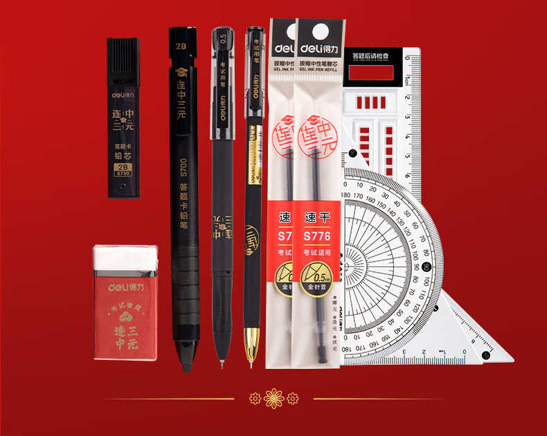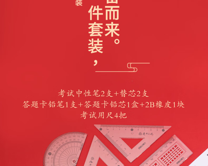 得力(deli)连中三元考试套装12件套 中性笔涂卡2B自动铅笔套尺橡皮 考中高考加油 考试中高考专用6696