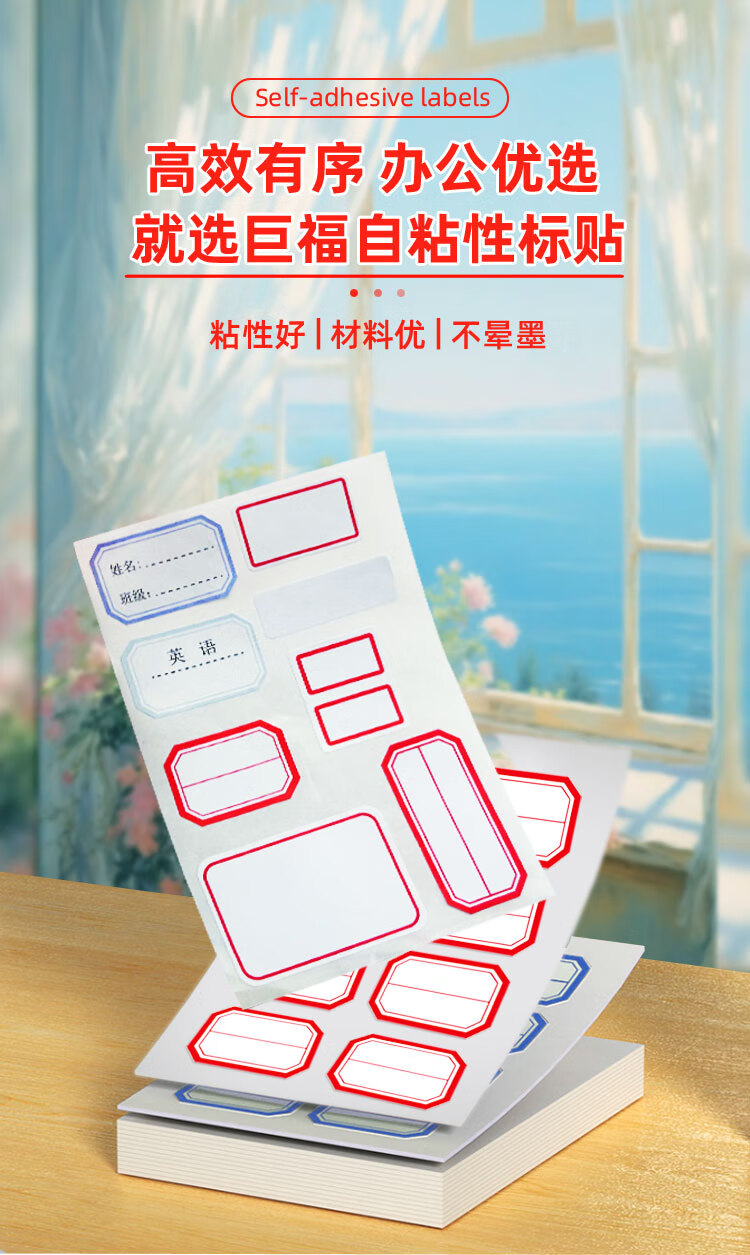 巨福168枚13×38mm不干胶标签贴纸便利贴自粘性标贴 14枚/张