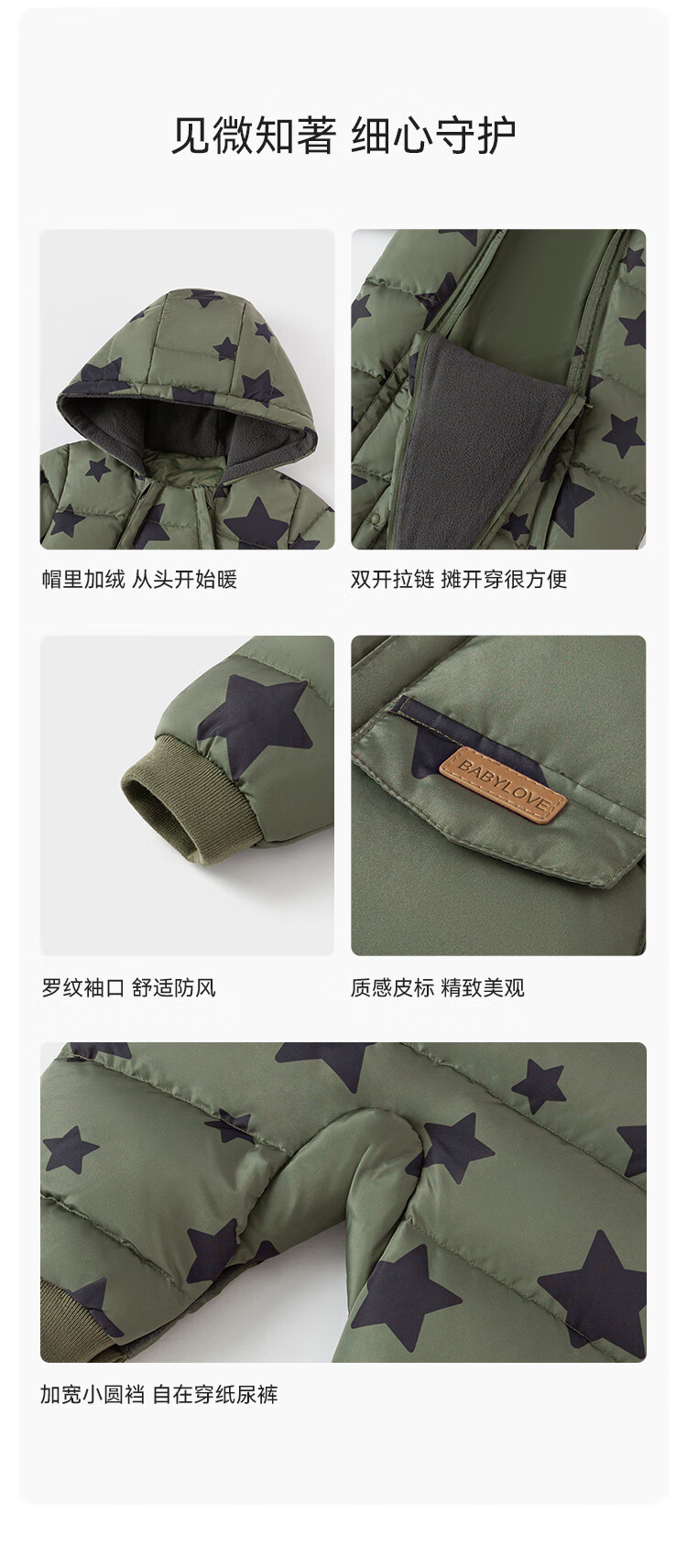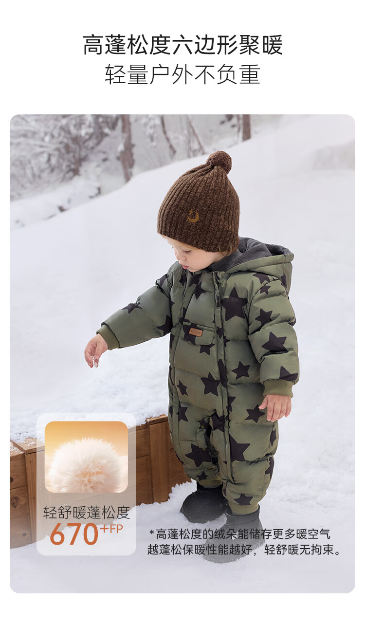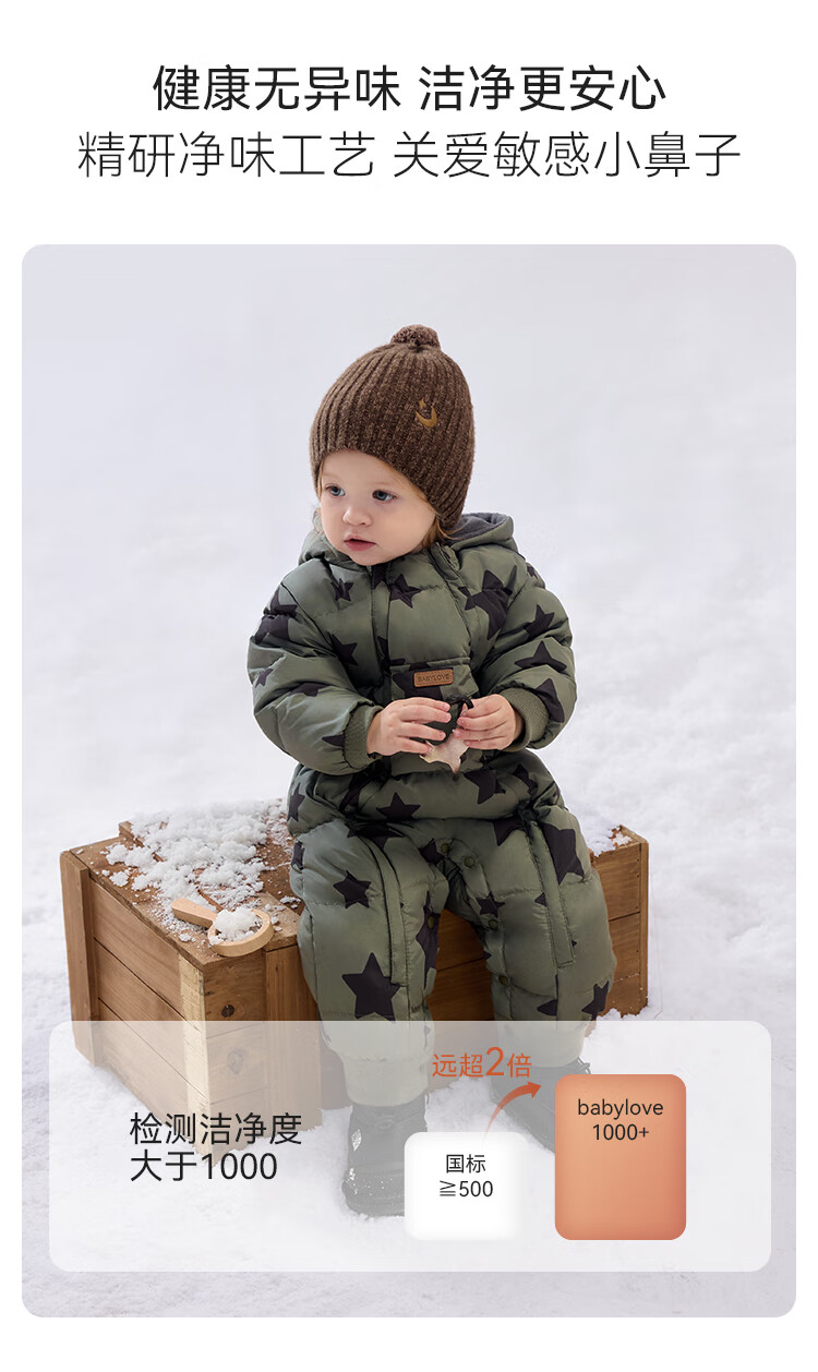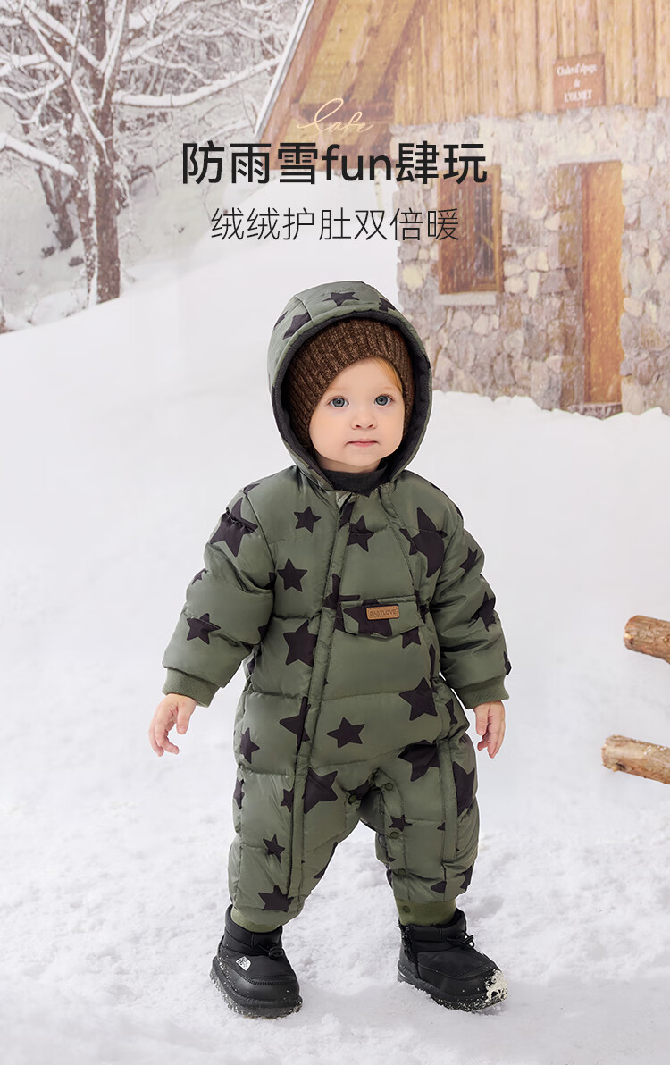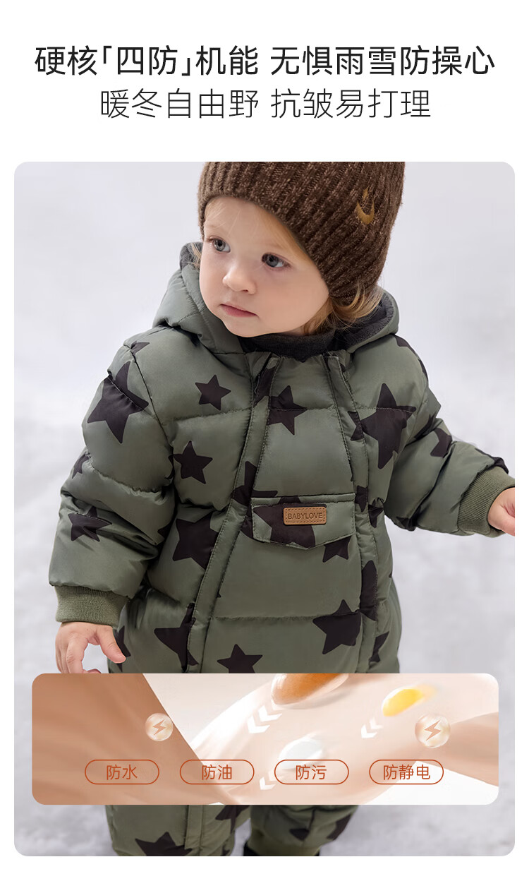 babylove【清仓】婴幼儿羽绒服连体衣冬季加绒防寒羽绒爬服宝宝连帽哈衣 星汉灿烂 80 cm