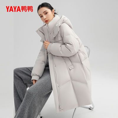 鸭鸭长款羽绒服女2025秋冬新品中长款时尚连帽保暖加厚90鸭绒外套