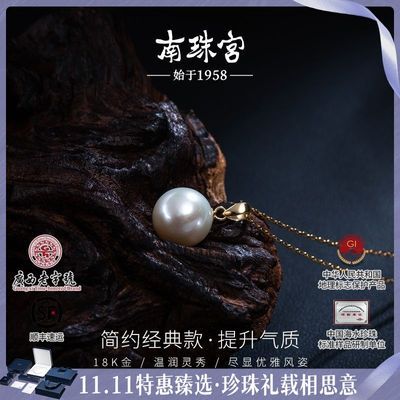 南珠宫淡水珍珠吊坠18K金瓜子扣圆形强光简约时尚中秋礼物送女友