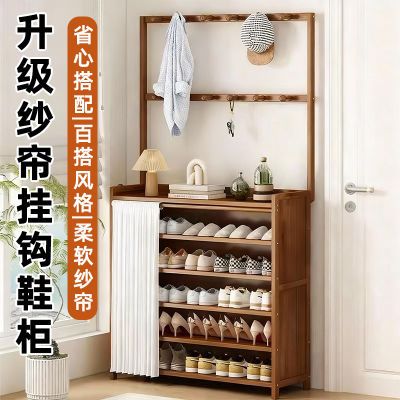 楠竹鞋架子多层家用门口入户门鞋柜挂衣架一体用多功能防尘置物架