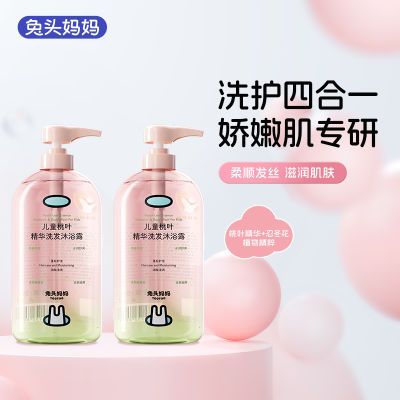兔头妈妈儿童沐浴露洗发水二合一桃叶精华婴儿宝宝专用洗头沐浴乳