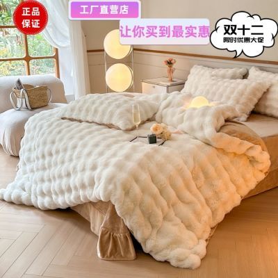 A类皮草绒兔兔毛绒床上四件套牛奶绒床单笠加厚法兰珊瑚绒被套4