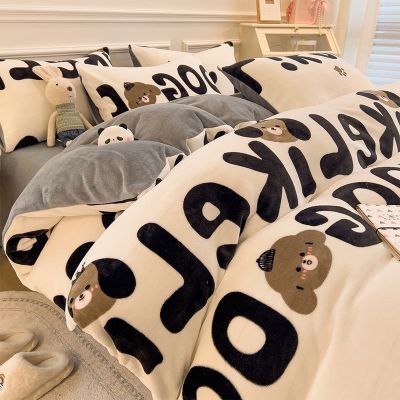 冬季牛奶绒四件套床上床单加绒加厚被套四件套加绒加厚冬天
