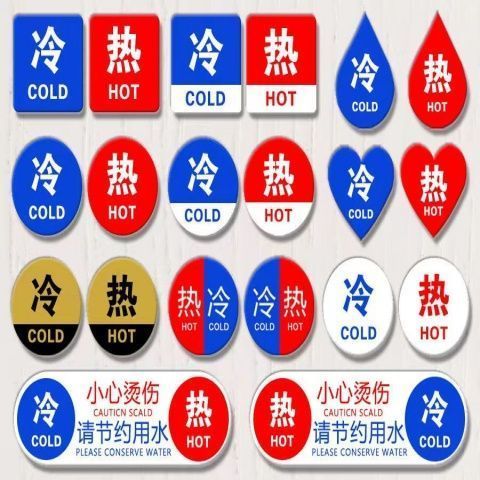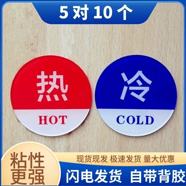 亚克力冷热水标识贴 家用酒店宾馆洗手间浴室水龙头冷热提示牌
