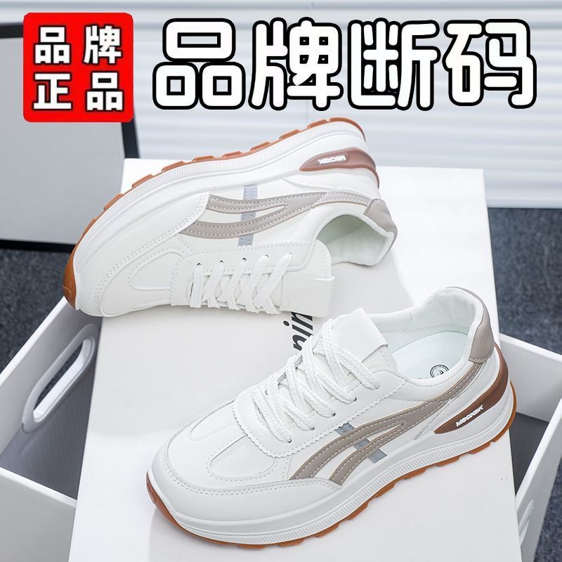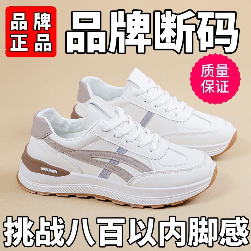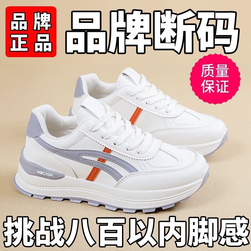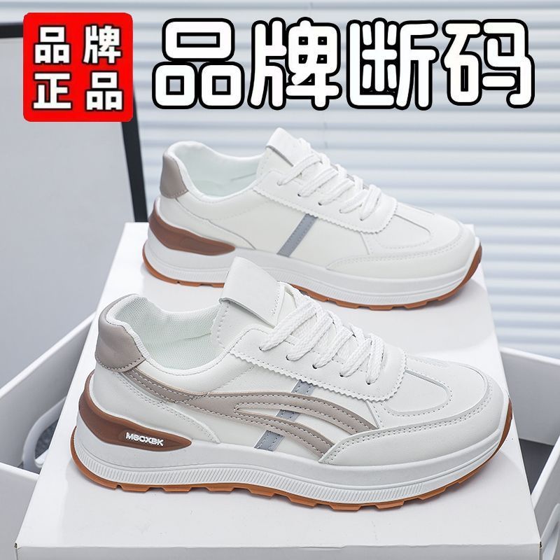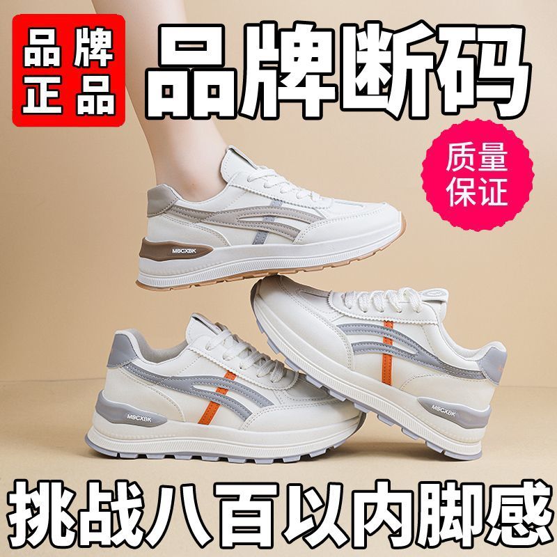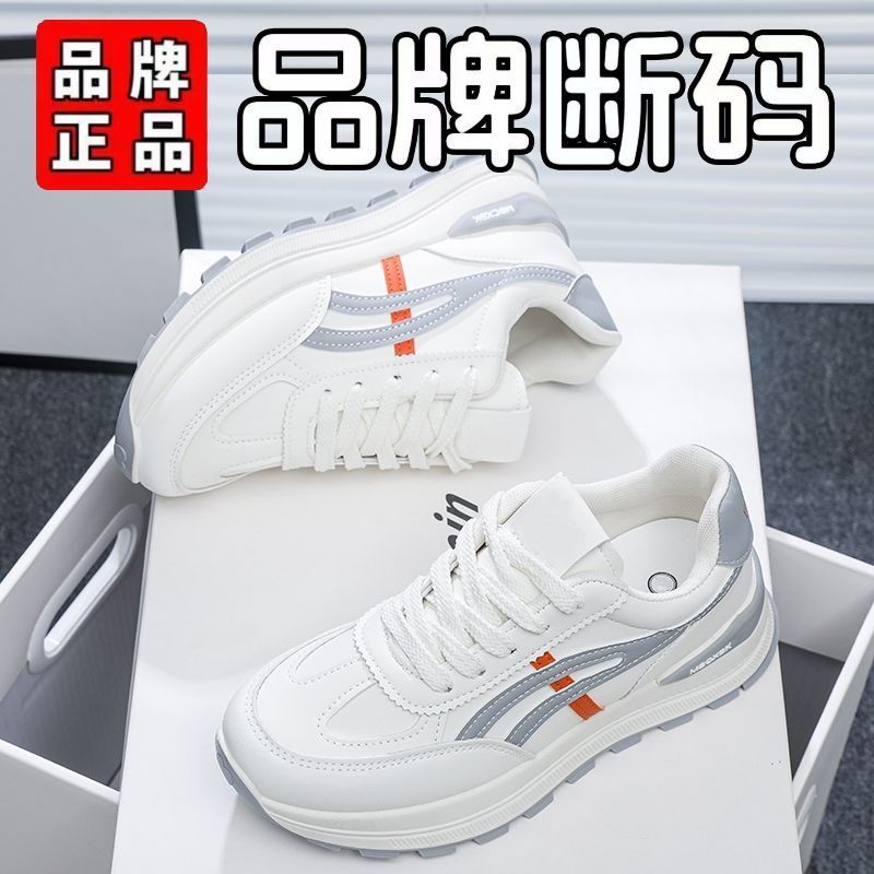 品牌断码皮面小白鞋女2025夏季新款舒适百搭软底轻便防滑运动鞋子