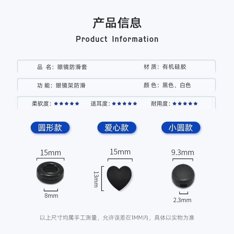 隐秘圆形眼镜防滑套硅胶防过敏眼镜腿支架配件防掉挂钩拖固定脚套