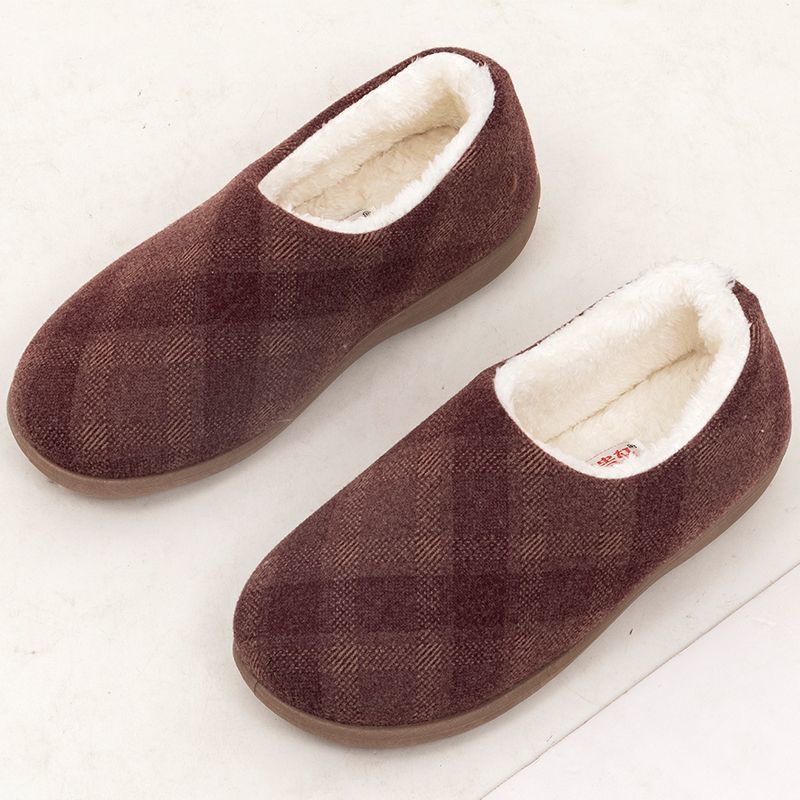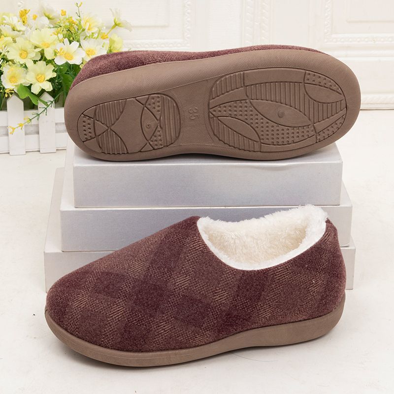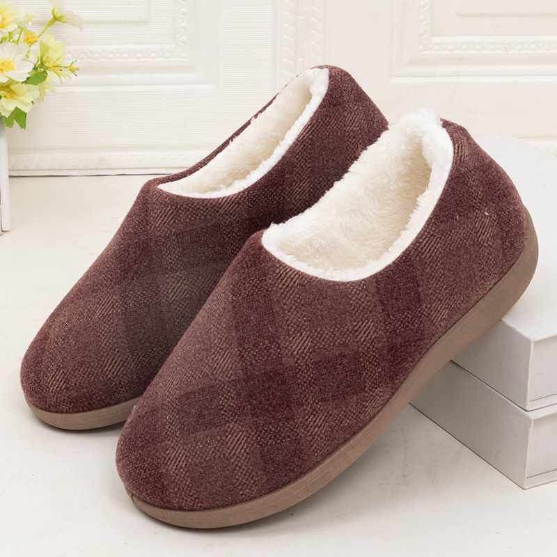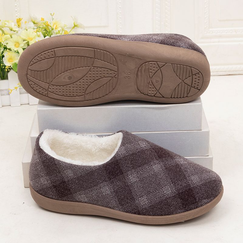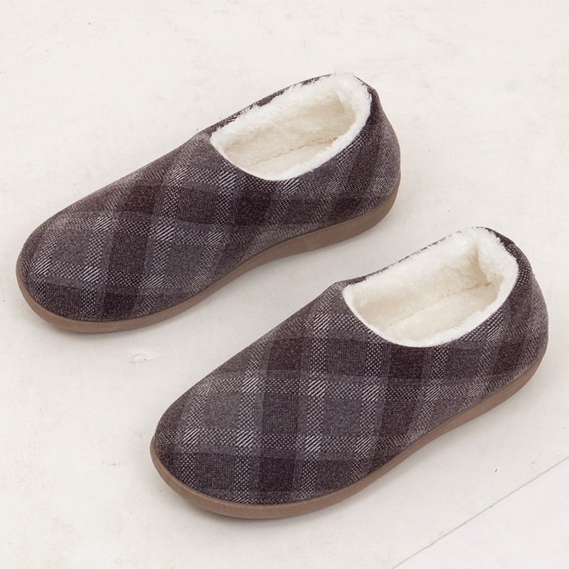 秋冬季新款高级感时尚格子棉鞋女款家居厚底保暖防滑妈妈鞋