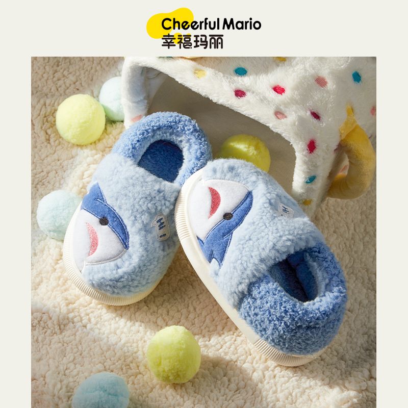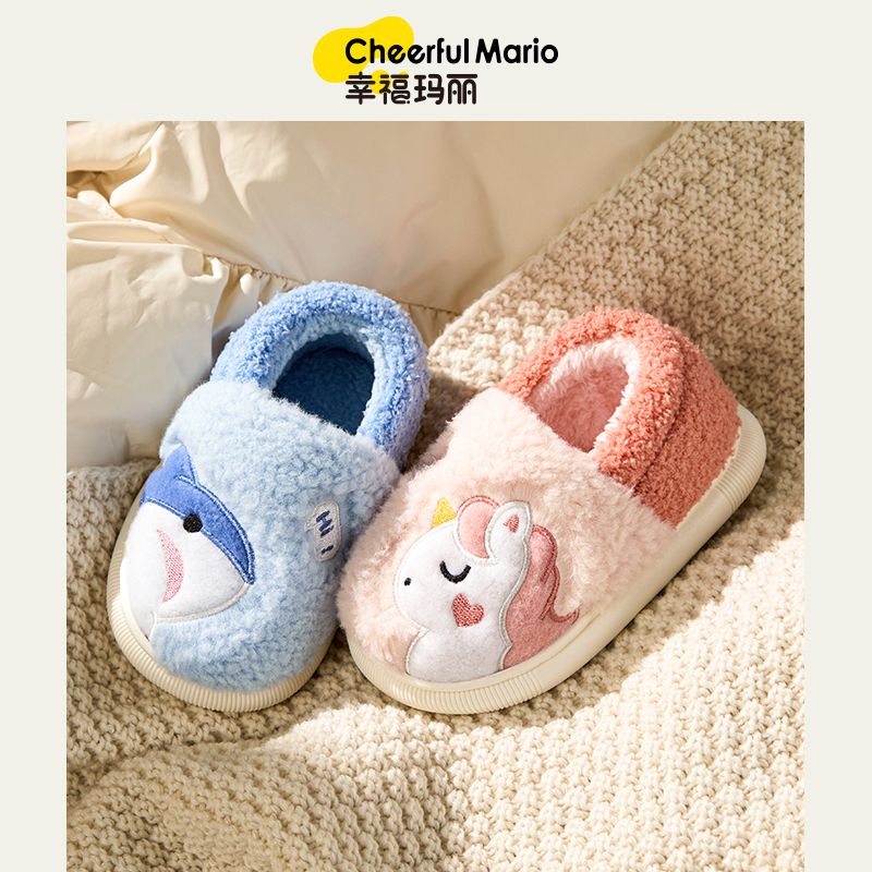 幸福玛丽儿童棉拖鞋男女童室内保暖棉鞋秋冬季中小童加绒包跟棉拖