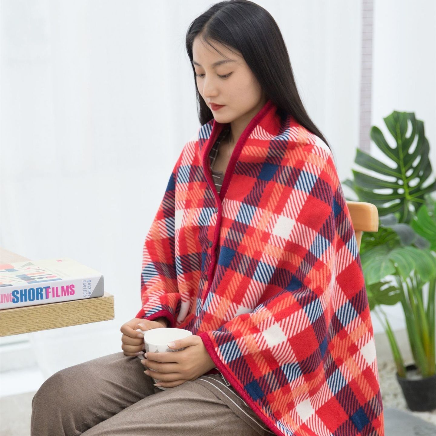 多功能加厚披肩毯办公室午休毯午睡空调盖毯法莱绒懒人沙发毯盖腿