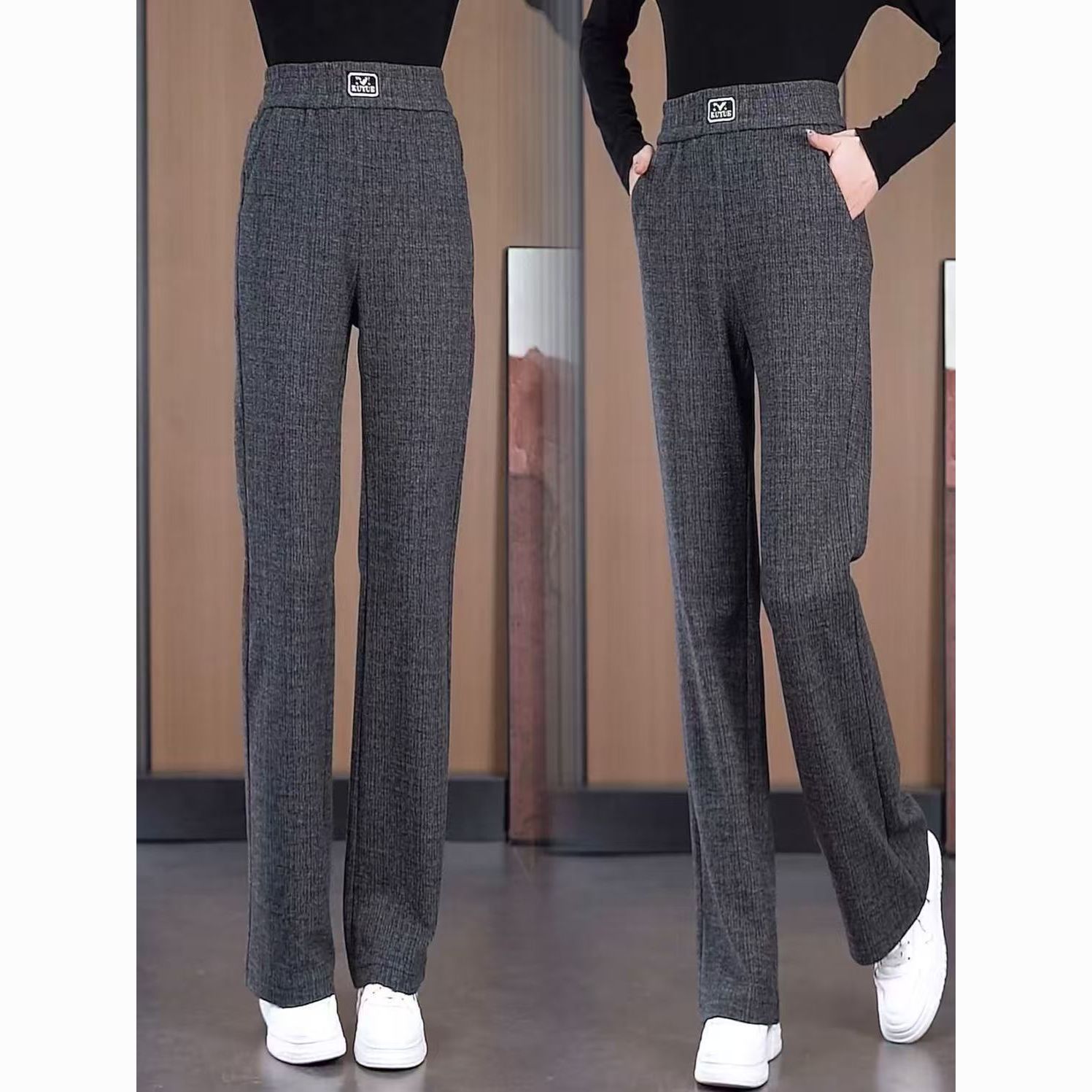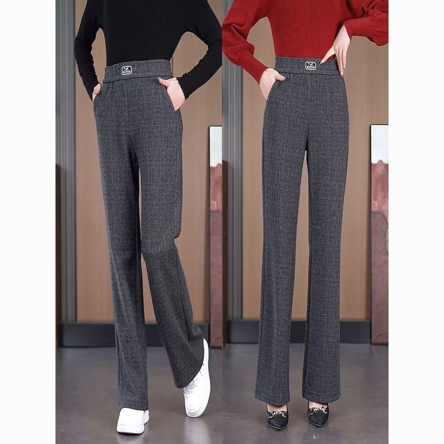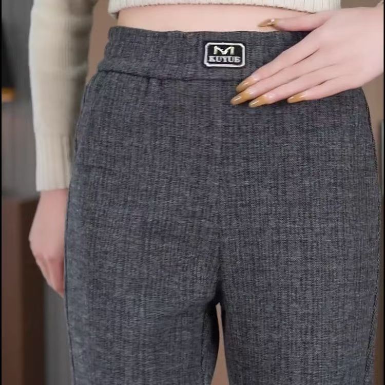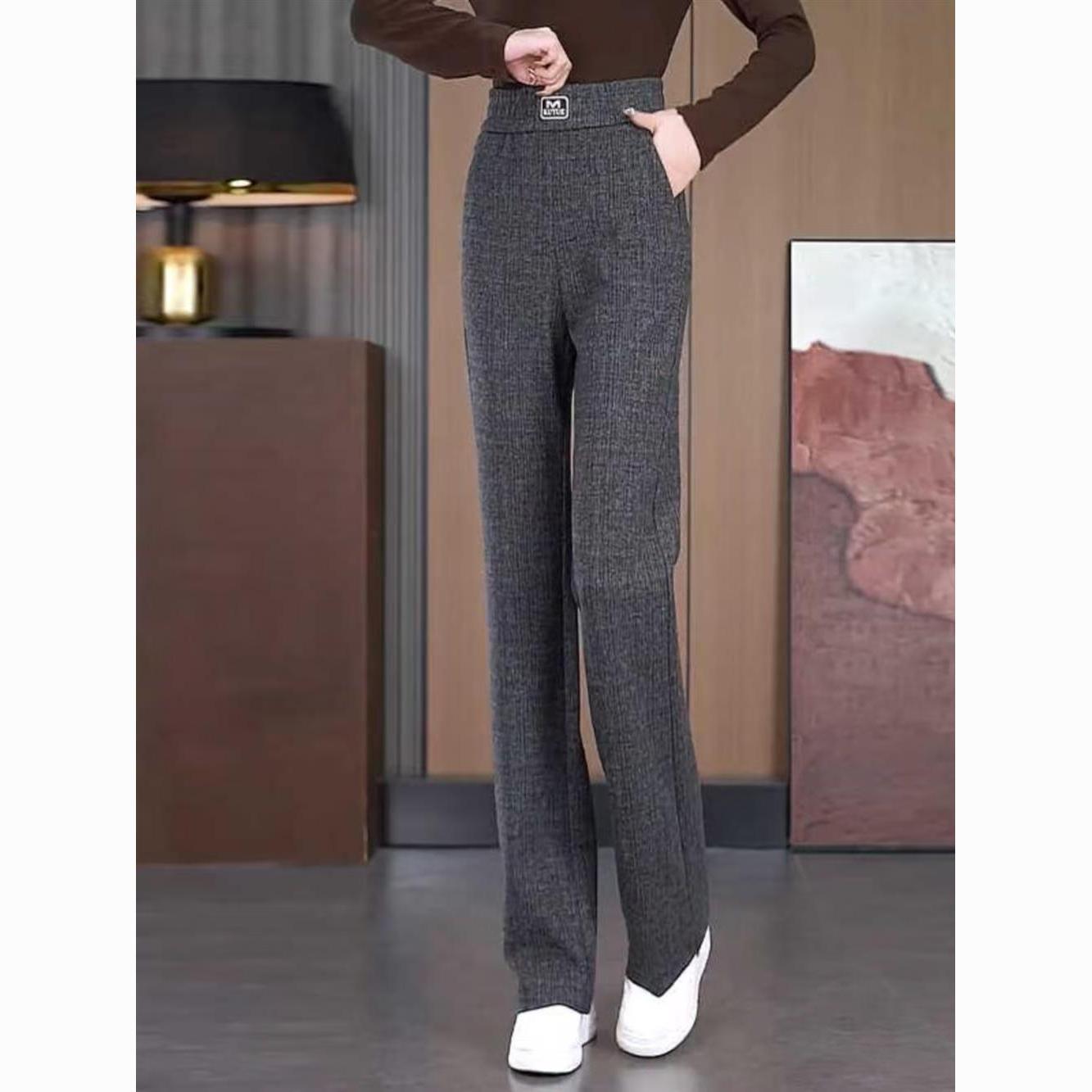 灰色微喇裤子女秋冬新款简约通勤高腰百搭修身显瘦窄版休闲喇叭裤
