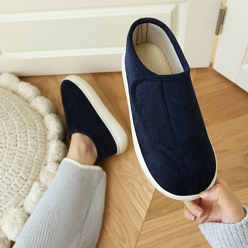 脚肿大开口亚麻拖鞋女春秋季防滑软底老人居家室内外包跟四季男款